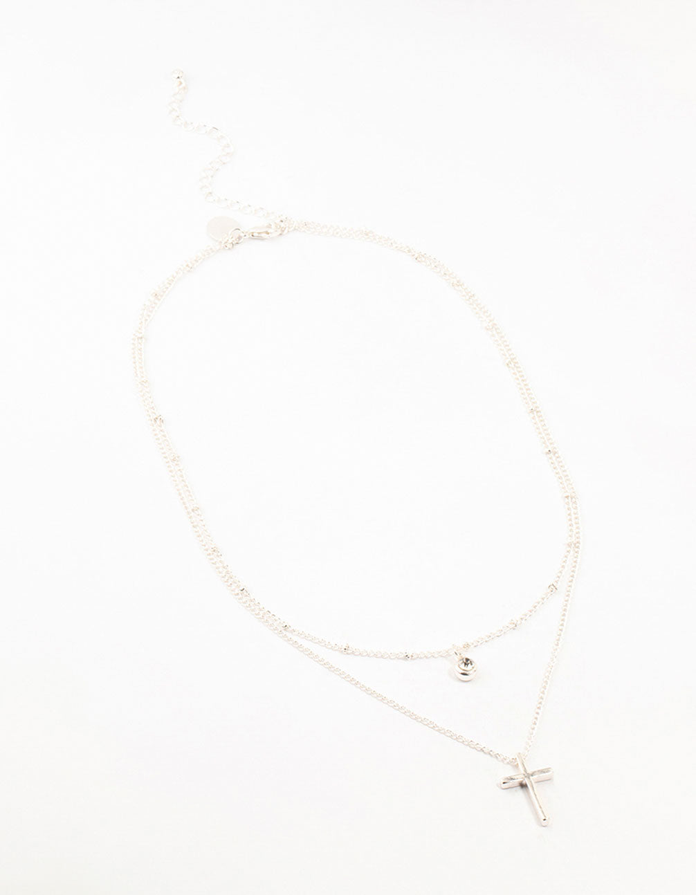 Silver Diamante Cross Layered Necklace