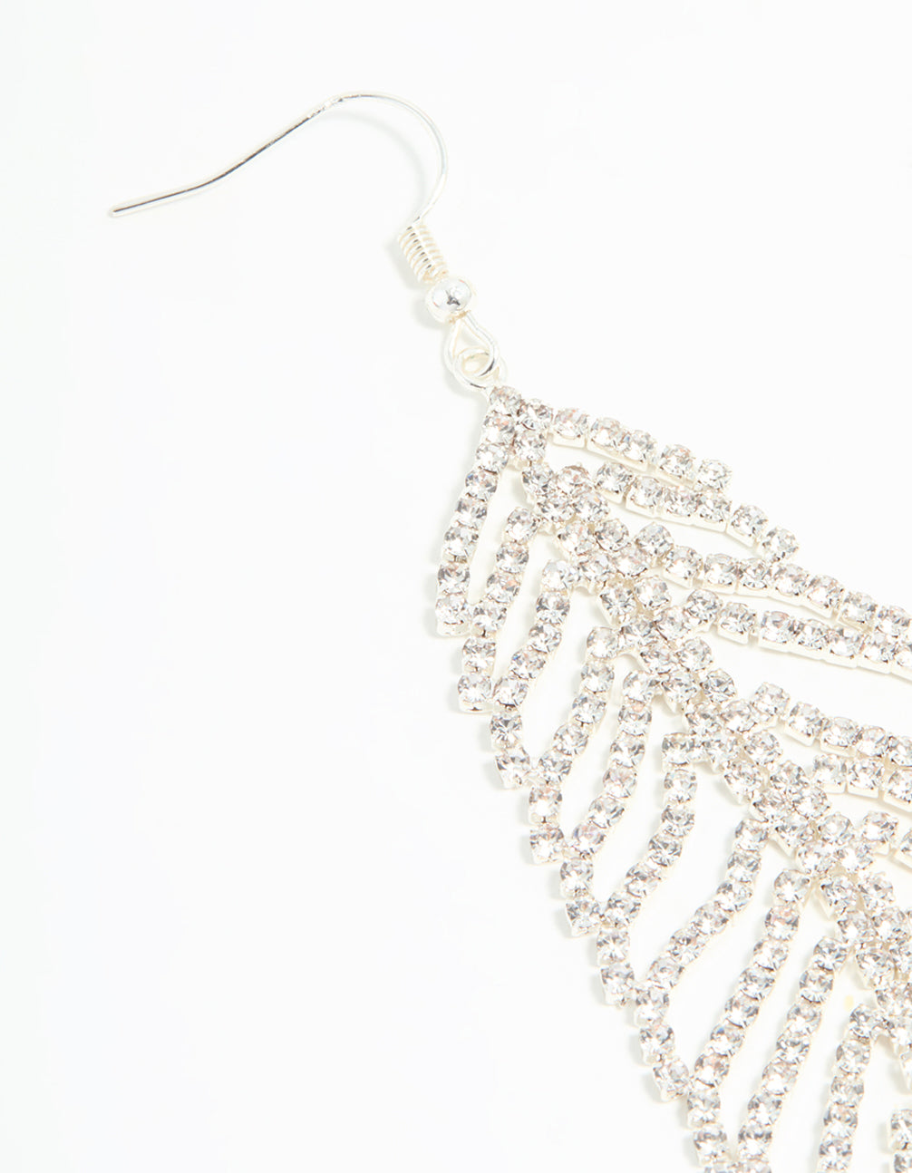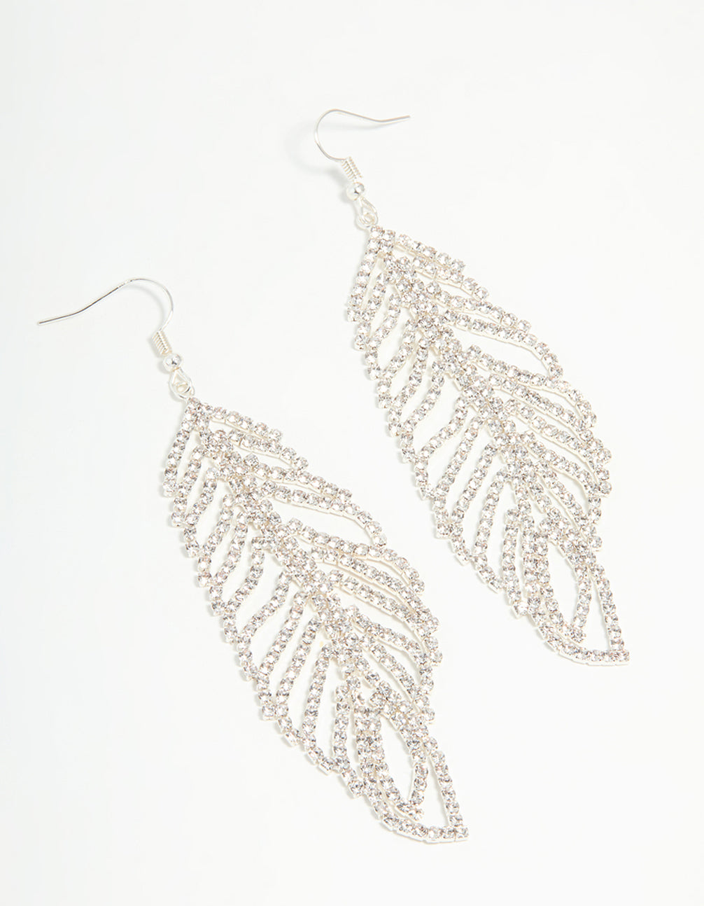Silver Diamante Leaf Outline Hook Large Drop Earrings