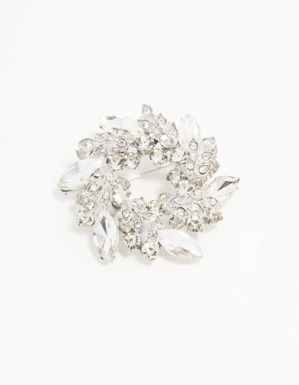 Silver Diamante Leaf Round Brooch Silver Diamante Leaf Round Brooch Silver Diamante Leaf Round Brooch