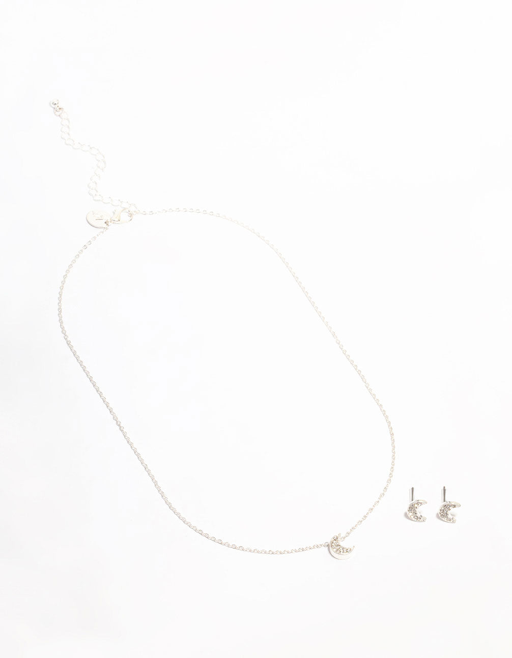 Bring a sprinkle of celestial magic to your look with this dazzling set. Featuring diamante encrusted moon earrings and a matching moon pendant necklace, it's perfect for added cosmic glam.