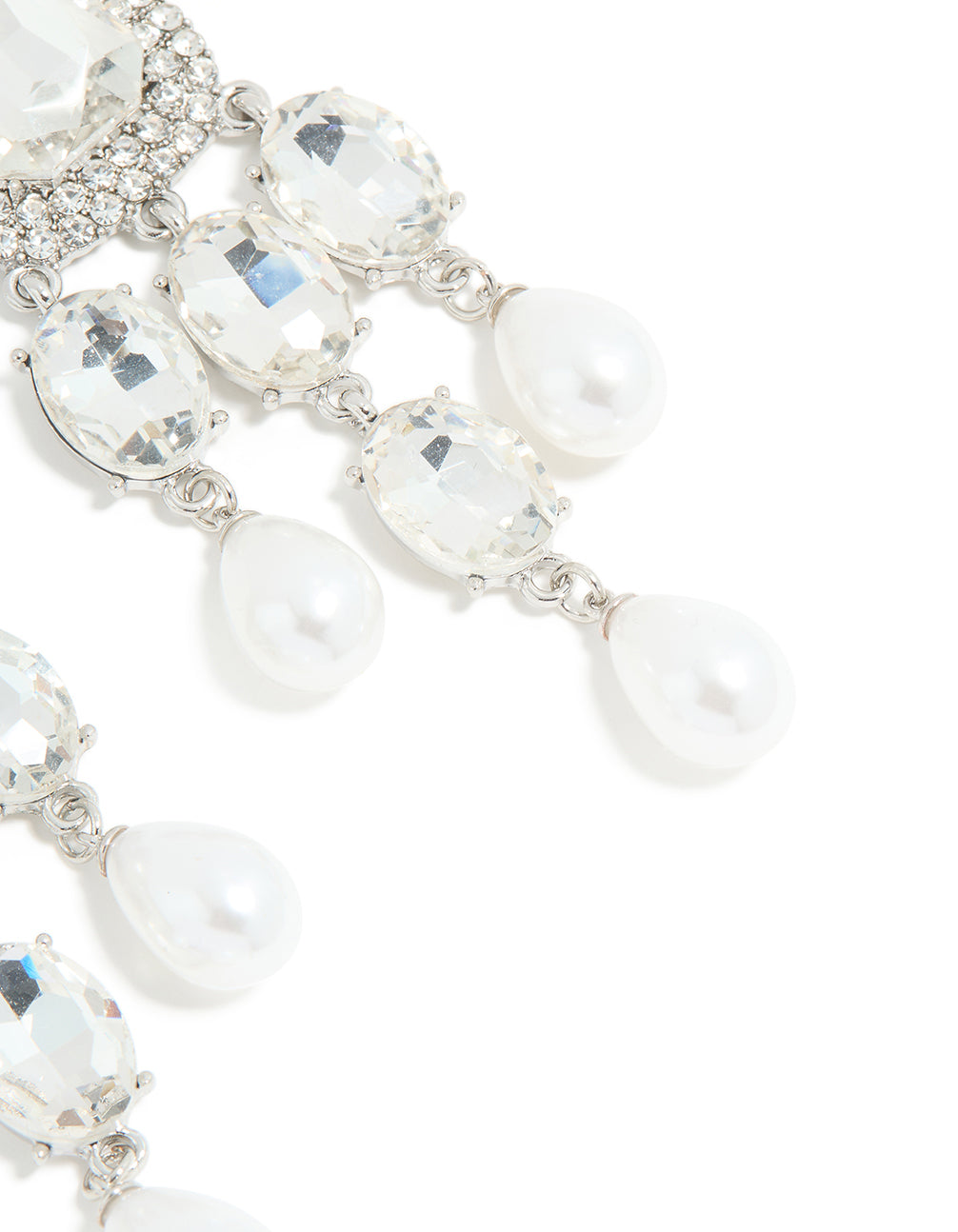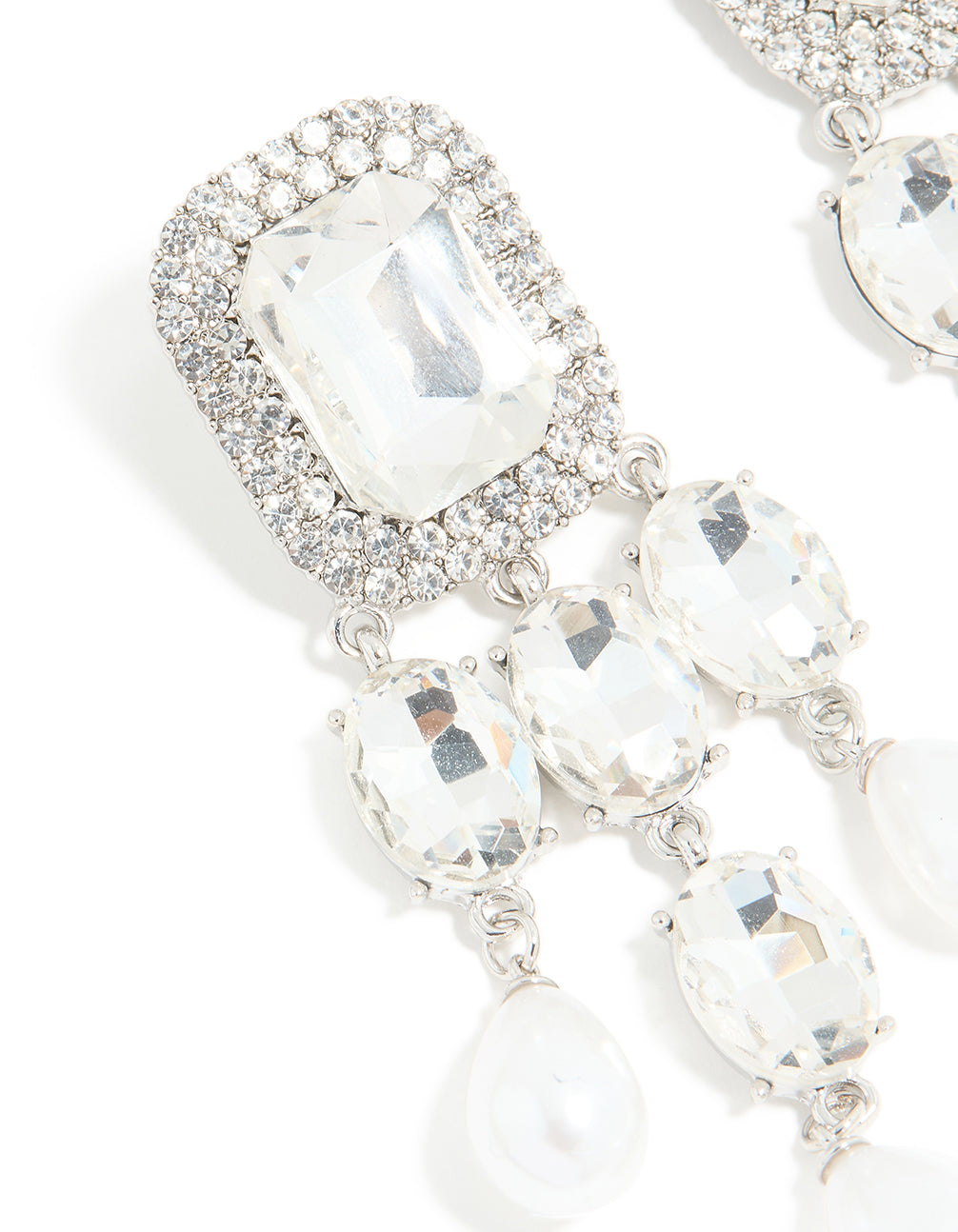 Silver Diamante Pearl Bling Drop Earrings Silver Diamante Pearl Bling Drop Earrings Silver Diamante Pearl Bling Drop Earrings