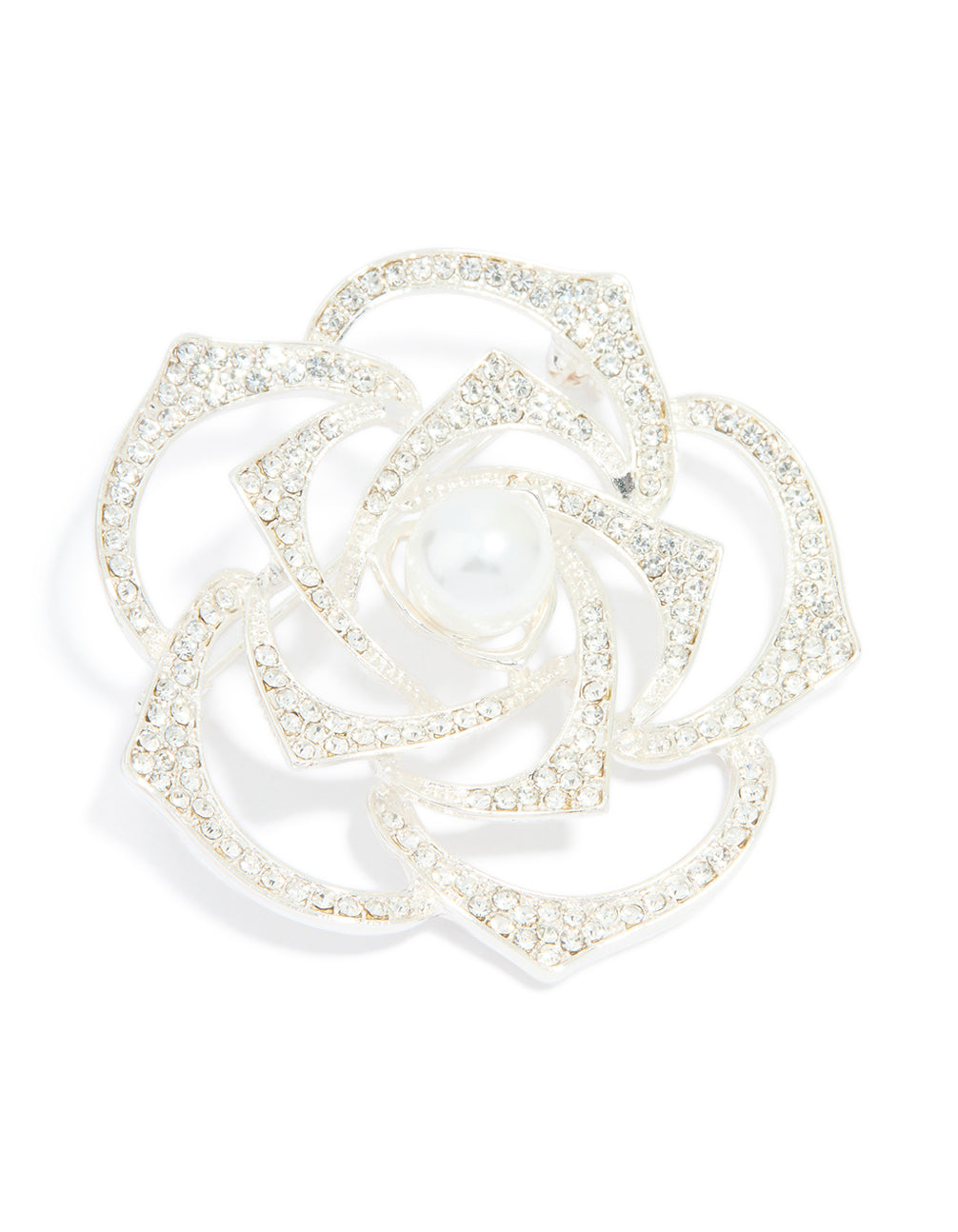 Silver Diamante & Pearl Rose Brooch