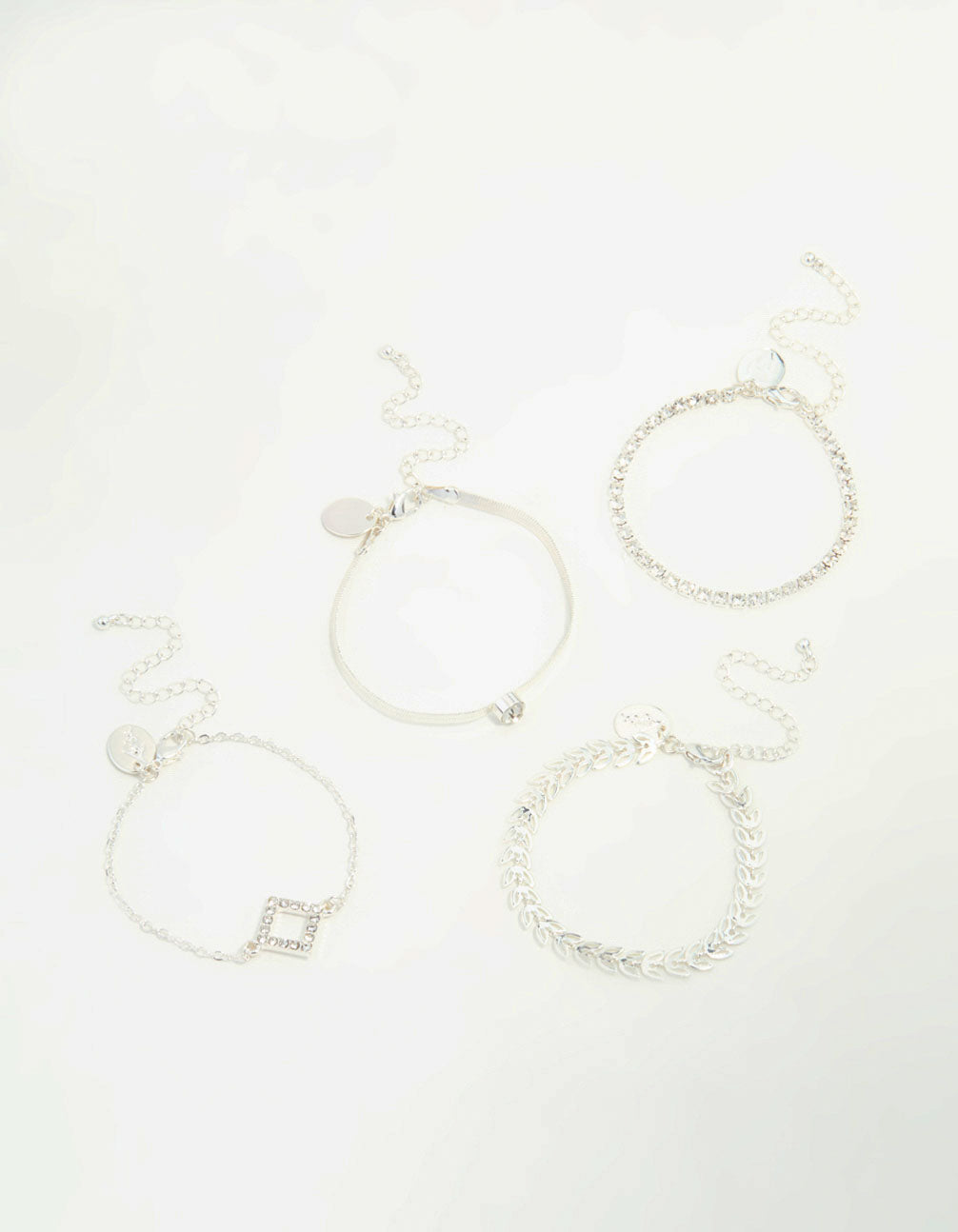 Craft the wrist stack of your dreams with this fabulous set. Featuring four toggle styles—a tennis bracelet, a diamante charm bracelet, a vine bracelet, and a diamond charm bracelet—you can stack them up or wear them solo for a standout look.