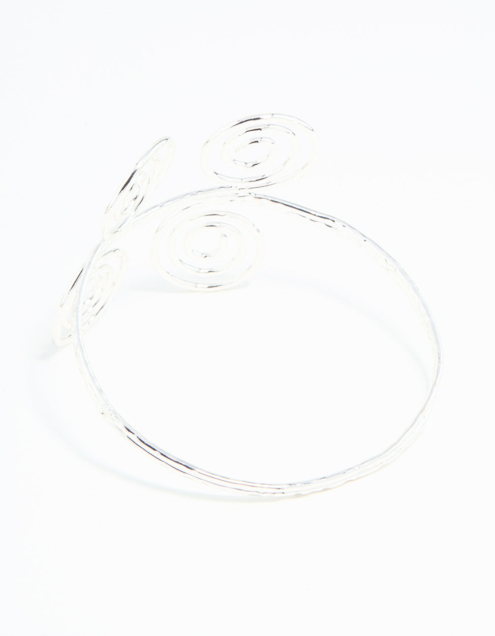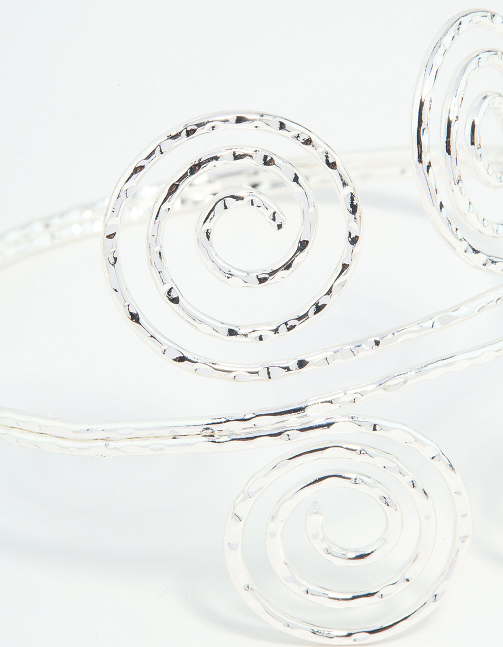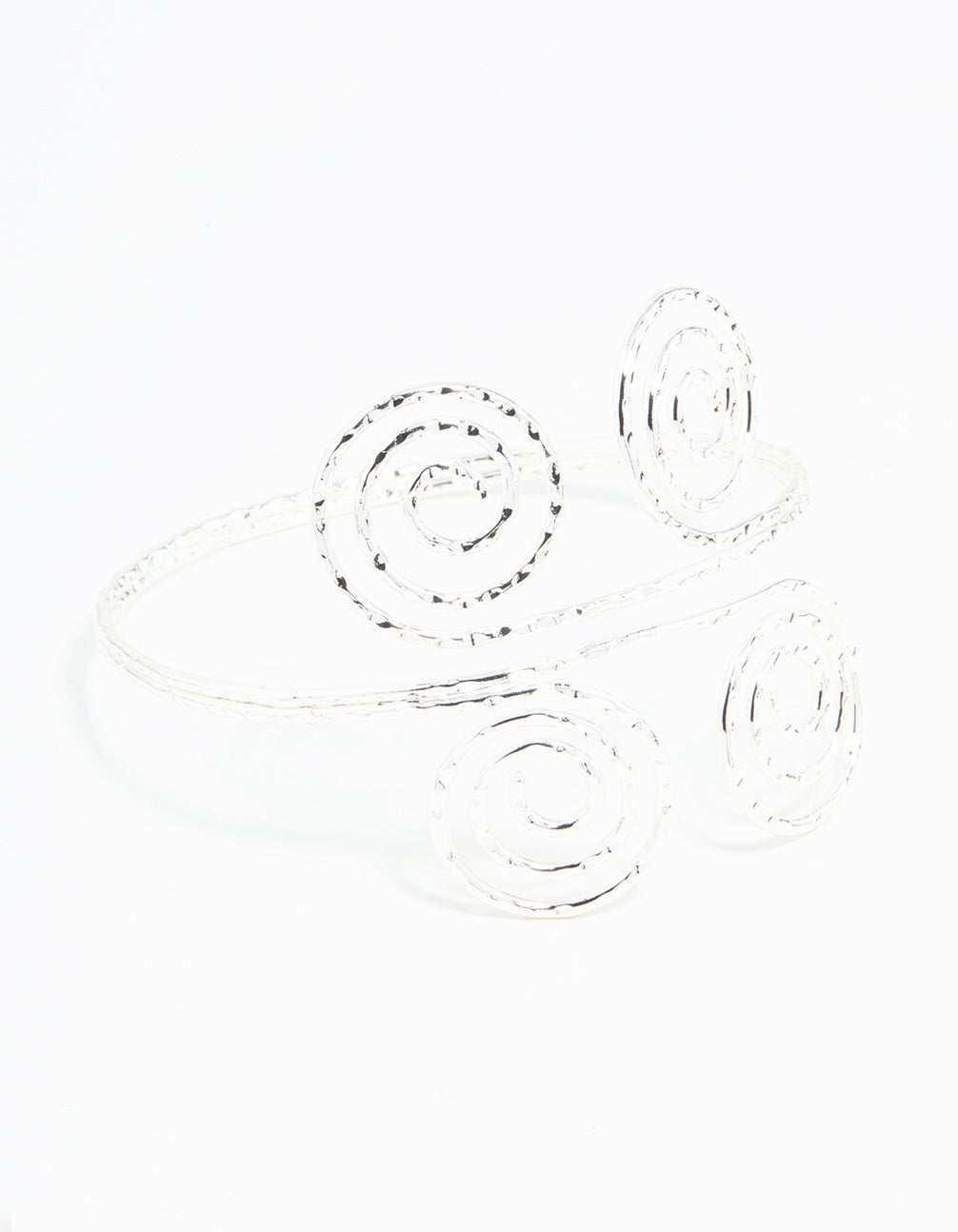 Add a statement piece to your look with this Silver Double Swirl Arm Cuff. Sleek and eye-catching, this wrist cuff features a bold double swirl design that curves elegantly around your arm for a modern yet timeless vibe. Perfect for festivals, nights out, or casual chic days, it pairs beautifully with sleeveless tops, maxi dresses, or even edgy leather jackets. Crafted from silver, this arm cuff is lightweight and stylish, making it ideal for accessorising without fuss. Whether you're dressing up or keeping it cool, this versatile cuff is your go-to for effortless flair.