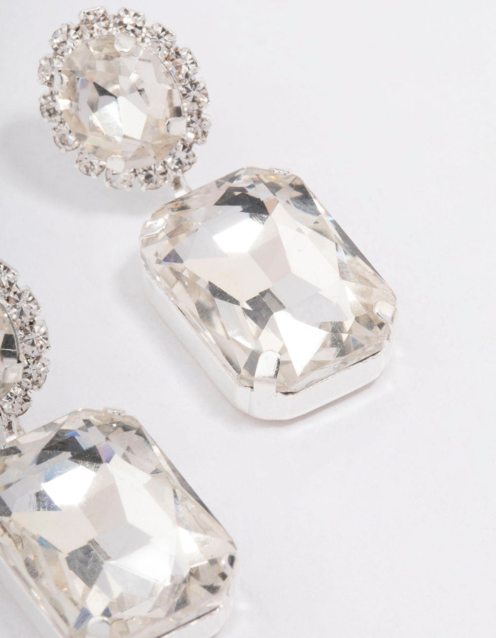 Make an entrance with these dazzling diamante drop earrings! These statement earrings feature a simple silver setting, adorned with oval and square shaped diamantes for an eye-catching finish to your stack. For a cohesive finish to your stack, style a matching diamante choker necklace for a modern finish.