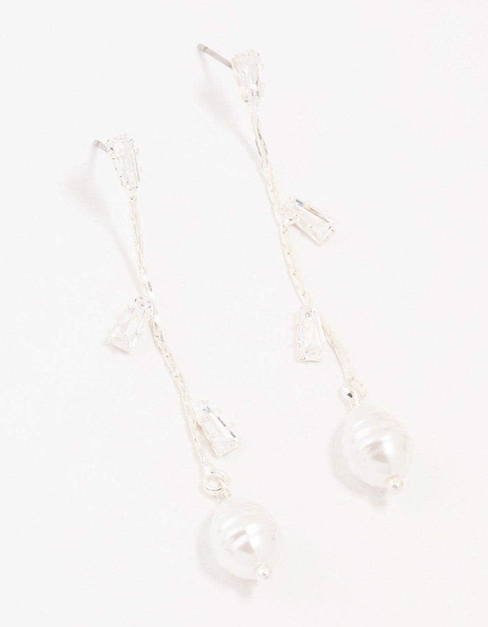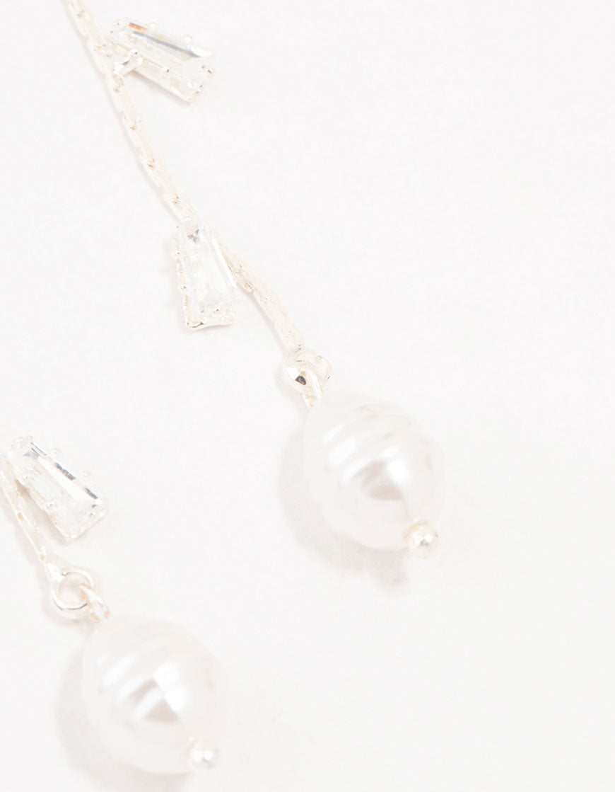 Silver Freshwater Pearl Cubic Zirconia Leaf Drop Earrings