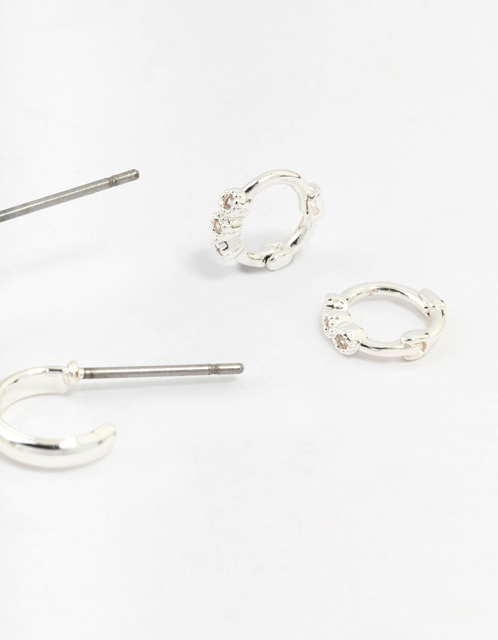 Silver Mixed Diamante Huggie Hoop Earrings 3-Pack