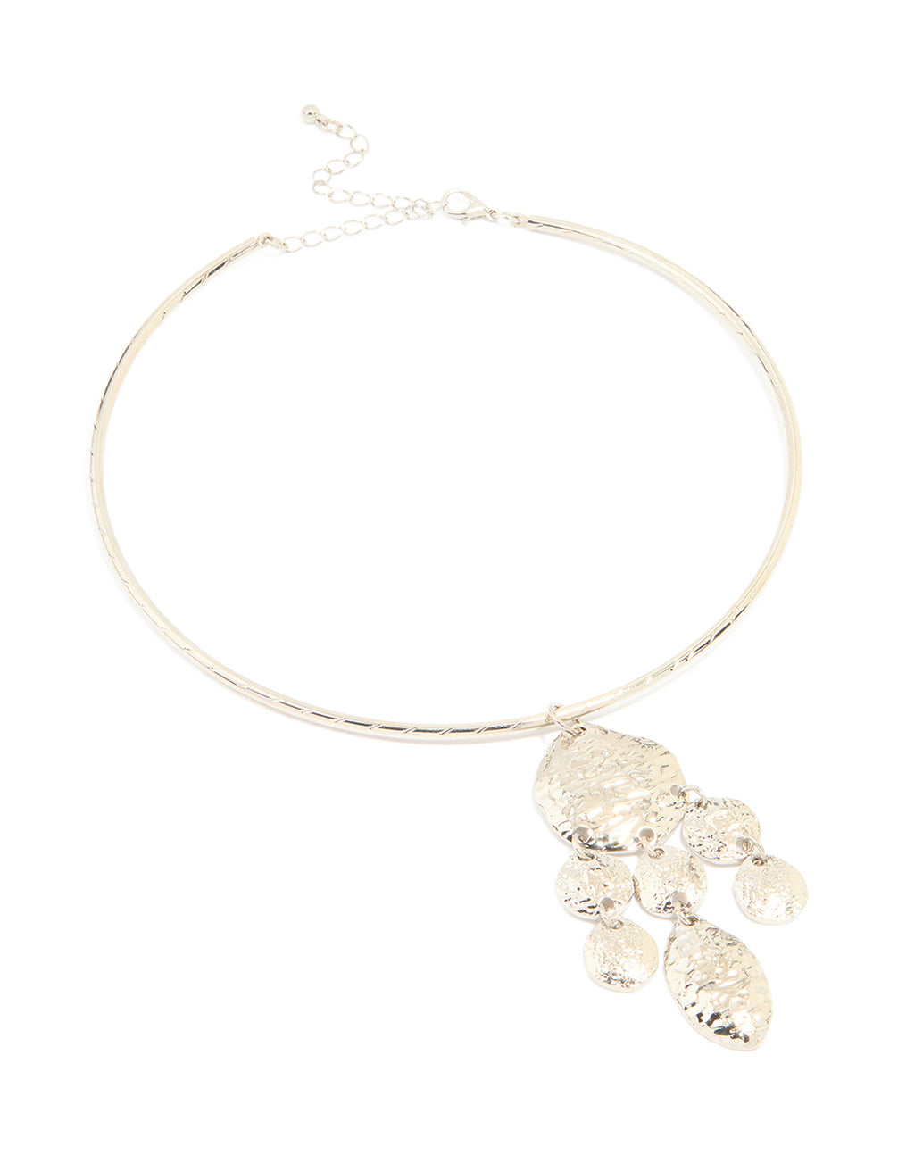 Silver Organic Circle Pendant Torque Necklace