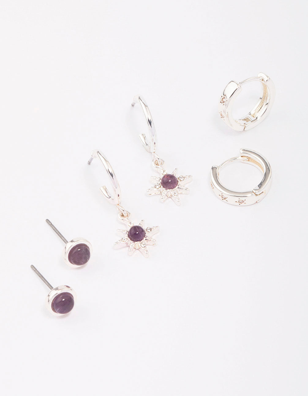 Silver Plated Amethyst Celestial Earring 3-Pack