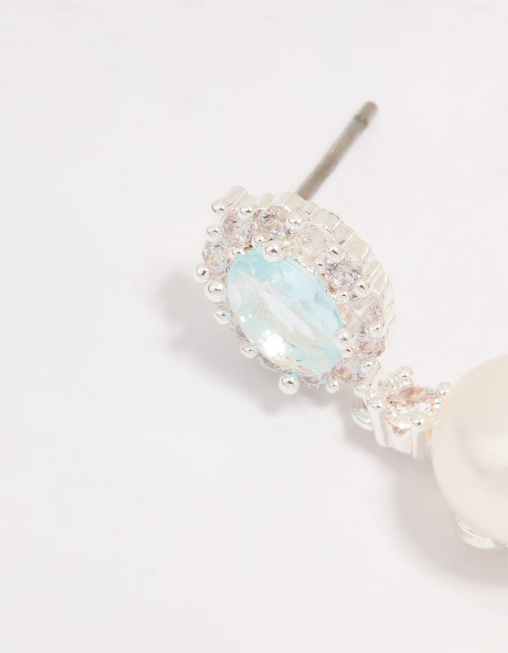 • Silver Plated Blue Cubic Zirconia Freshwater Pearl Halo Drop Earrings - link has visual effect only