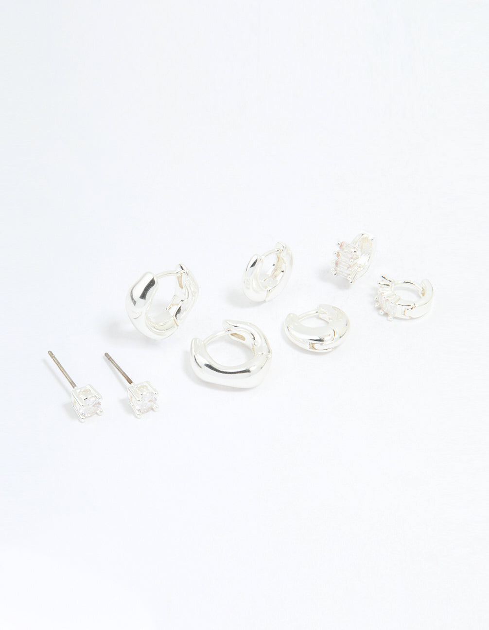 Add a touch of elegance to your jewellery collection with this Silver Plated Brass Cubic Zirconia Baguette Hoops & Stud Earrings Pack. Perfect for earring stacks, this versatile set includes cubic zirconia studs for a sparkling finish, molten-style huggies, small huggie earrings, and cubic zirconia-encrusted huggies. Crafted with silver-plated brass, these earrings are lightweight, chic, and ideal for layering. Whether you're dressing up for a night out or keeping it casual with jeans and a tee, these earrings are the ultimate accessory. Mix and match for endless combinations, pairing them with dainty necklaces or bold rings for a polished look. Perfect for everyday wear or special occasions, this set is a must-have for anyone who loves to style their ears with modern flair.