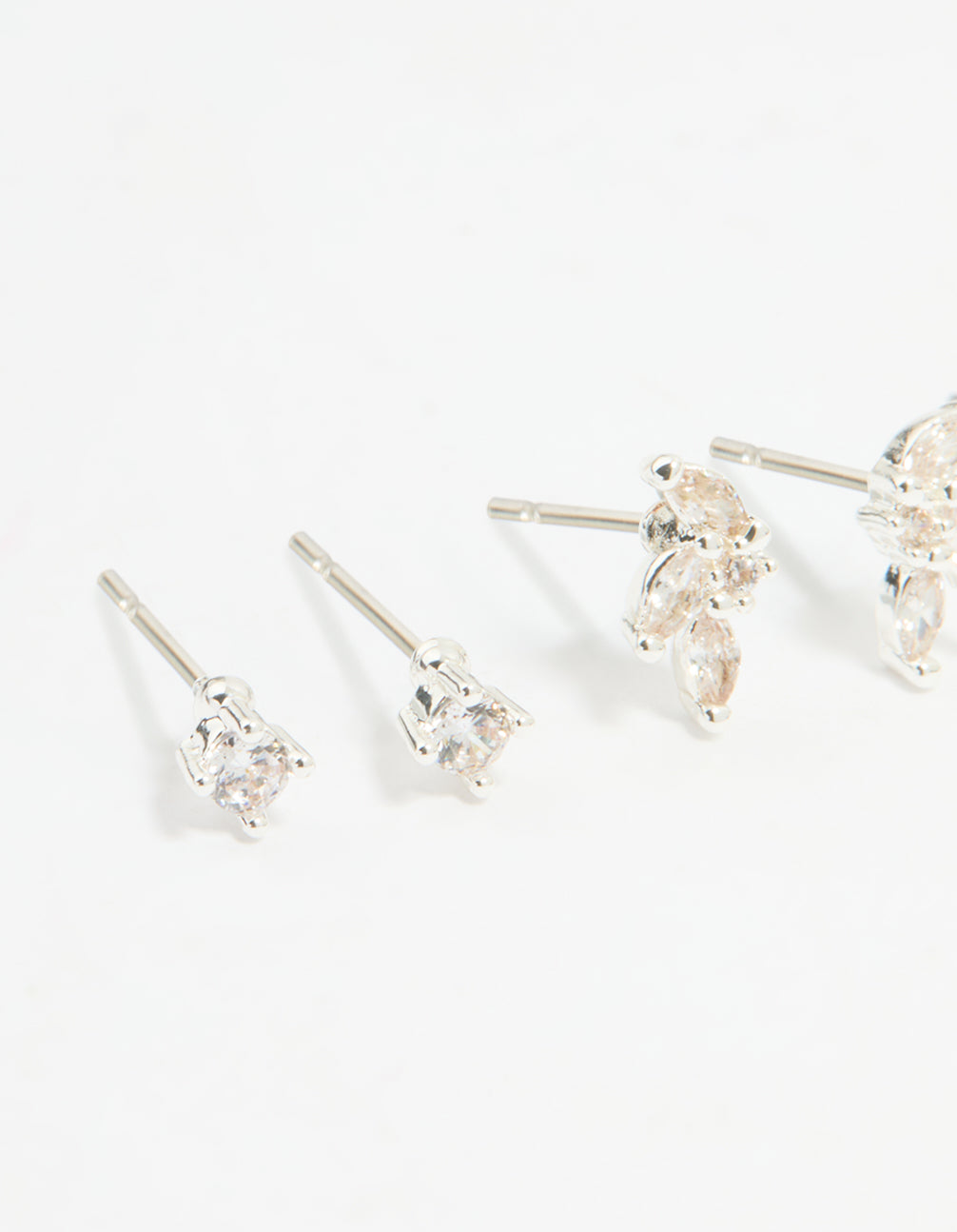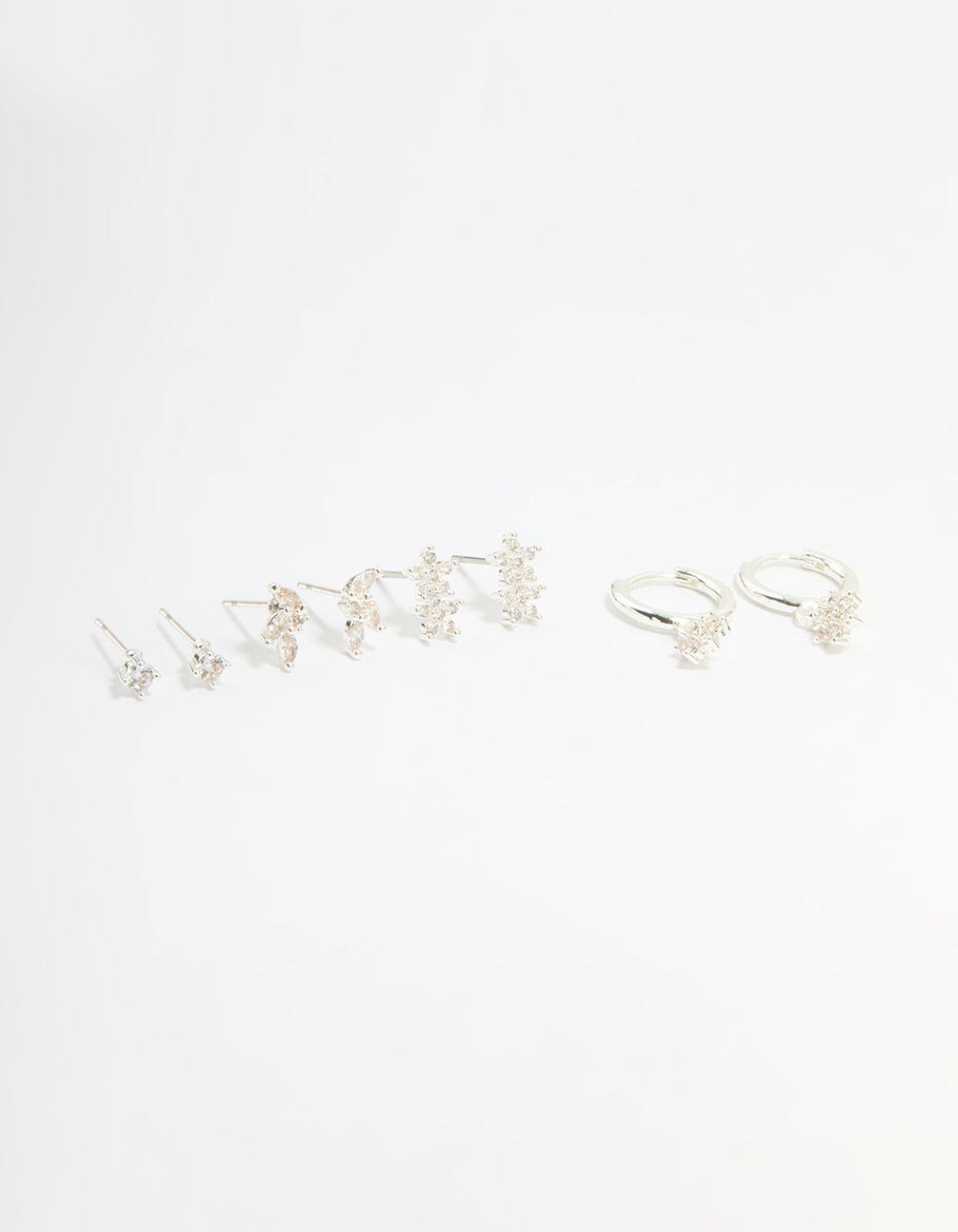Brighten up your jewellery collection with this Silver Plated Brass Flower Stud & Hoop Earrings Pack. This gorgeous set includes delicate cubic zirconia crystal studs in a variety of designs—classic, leaf-shaped, and double flower motifs—alongside elegant floral huggie hoop earrings. Crafted from silver-plated brass, these earrings are perfect for mixing and matching to create effortless looks for any occasion. Whether you're dressing up for a casual lunch or adding sparkle to an evening outfit, these versatile pieces pair beautifully with a flowy dress or tailored blazer. Ideal for curated ear stacks or standalone chic, this pack offers endless style opportunities for anyone who loves sophisticated yet playful accessories.