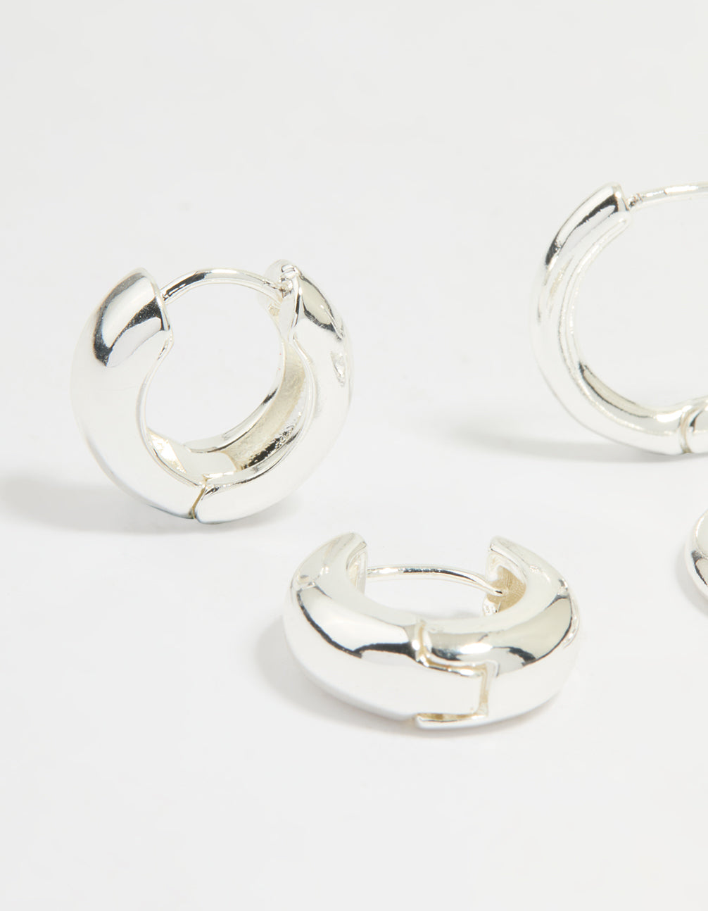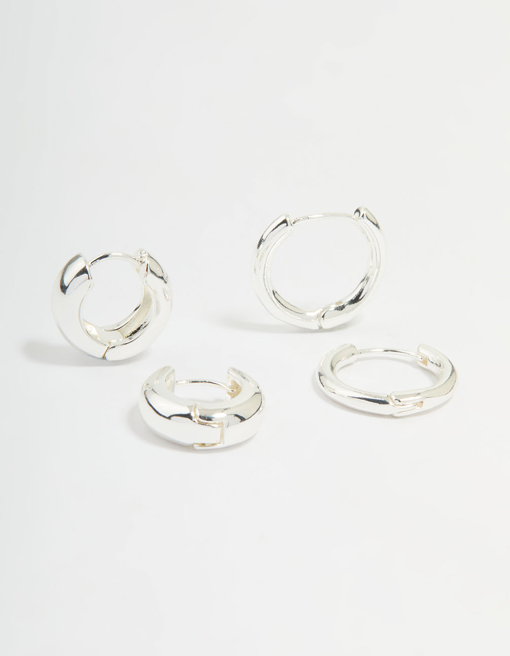 Silver Plated Brass Small & Medium Huggie Earrings 2-Pack Silver Plated Brass Small & Medium Huggie Earrings 2-Pack Silver Plated Brass Small & Medium Huggie Earrings 2-Pack