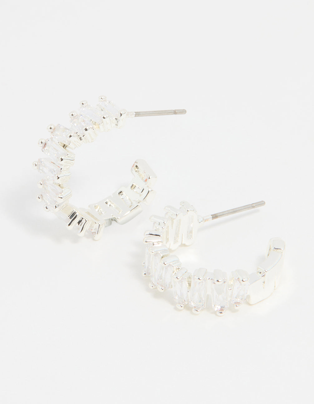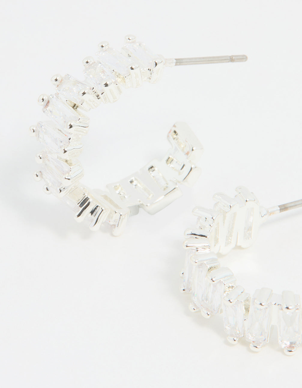 Silver Plated Cubic Zirconia Baguette Hoop Earrings