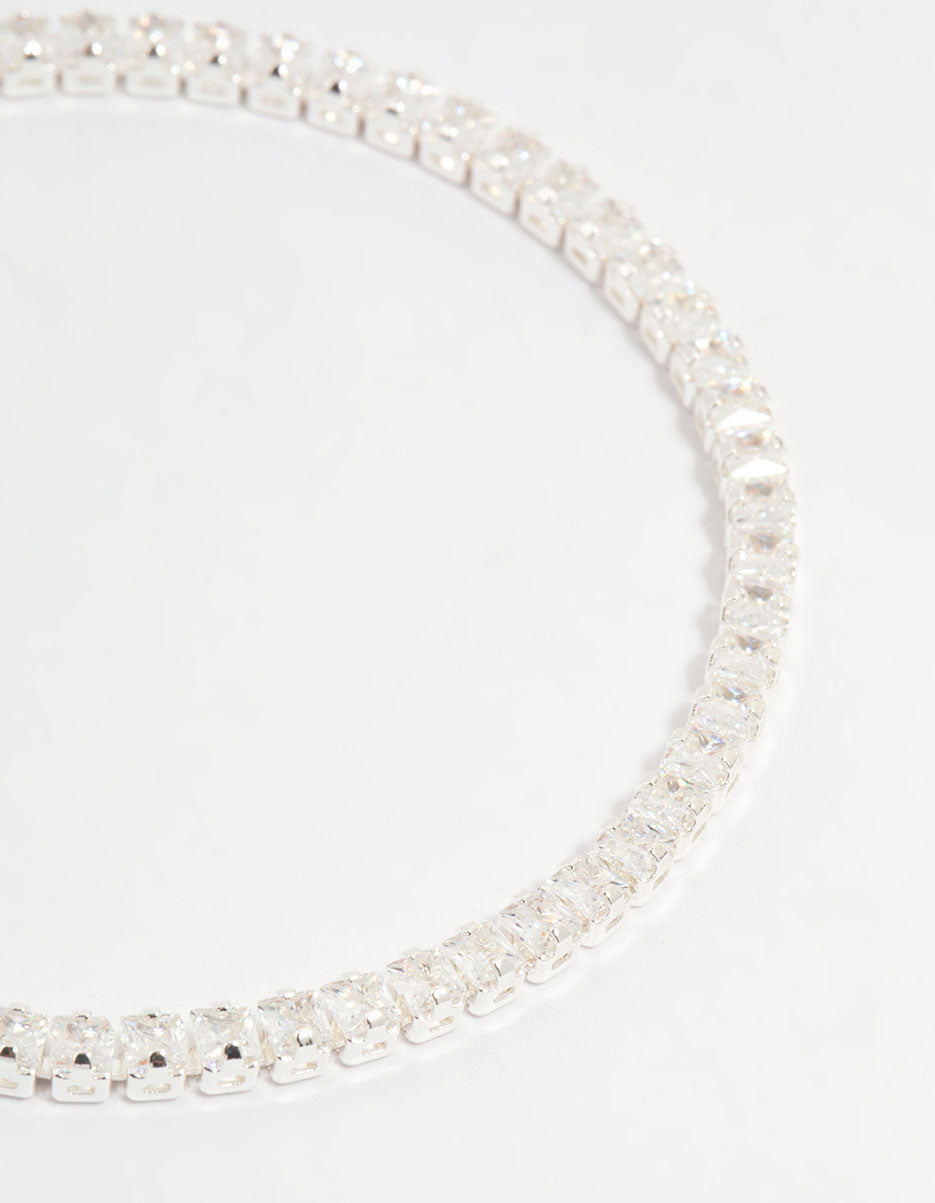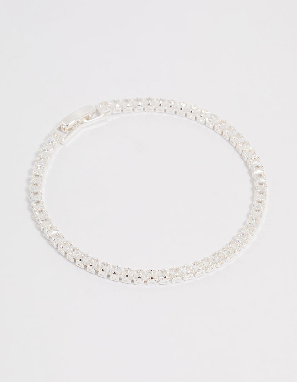 Silver Plated Cubic Zirconia Baguette Tennis Bracelet
