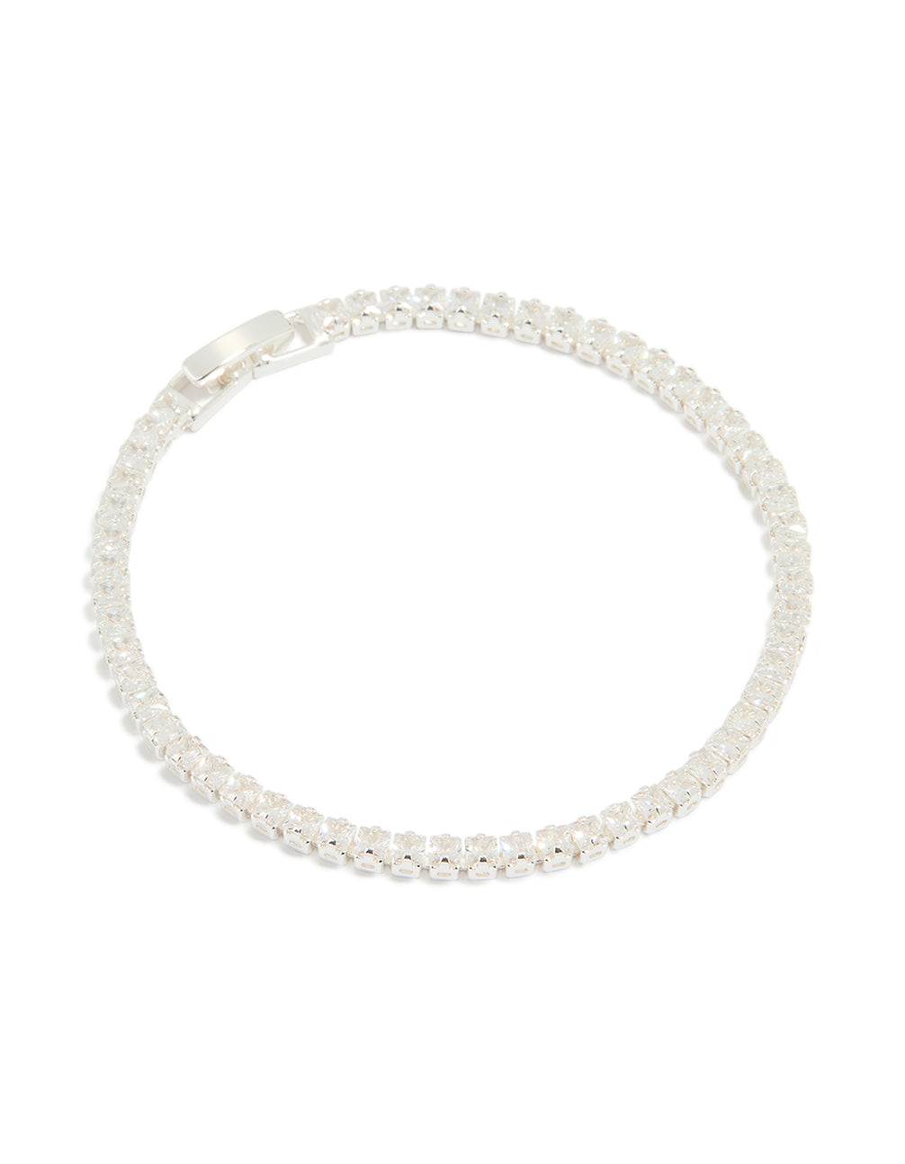 Add a touch of sparkle to your style with the Silver Plated Baguette Tennis Bracelet. This sleek, silver-plated bracelet features dazzling baguette-cut cubic zirconia crystals, making it the perfect piece of jewellery for anyone who loves understated glamour. Whether you're dressing up for a wedding, a party, or a formal evening out, this bracelet adds an elegant finishing touch. Pair it with a little black dress for a chic look, or layer it with other bracelets for a trendy vibe. Lightweight yet luxurious, it's versatile enough for everyday wear or special occasions. This timeless piece is a must-have for any jewellery collection!