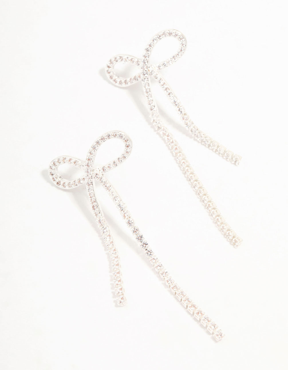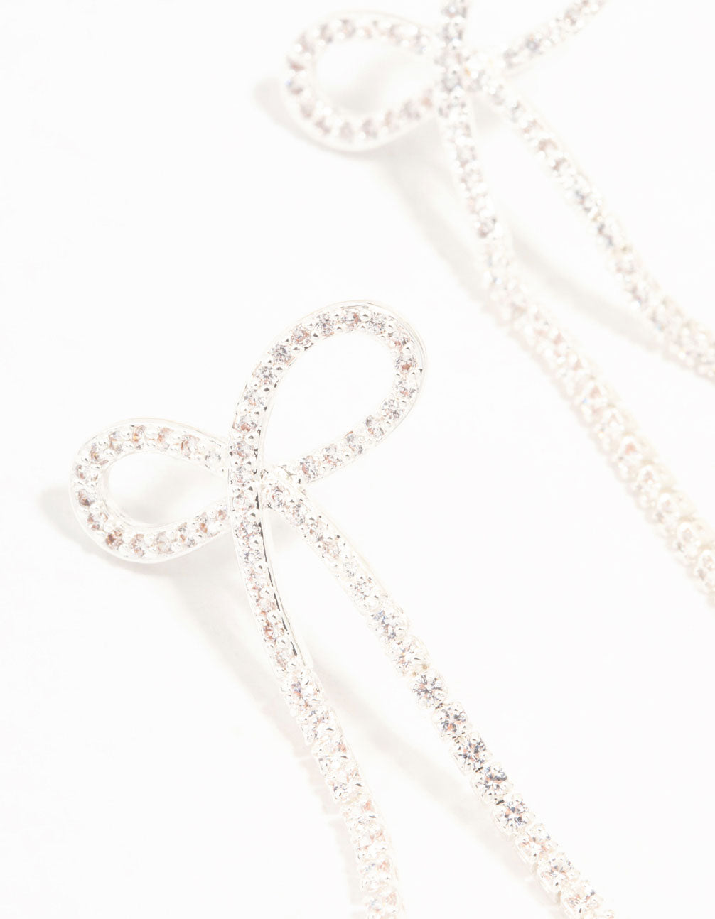 Silver Plated Cubic Zirconia Loop Cup Chain Bow Earrings