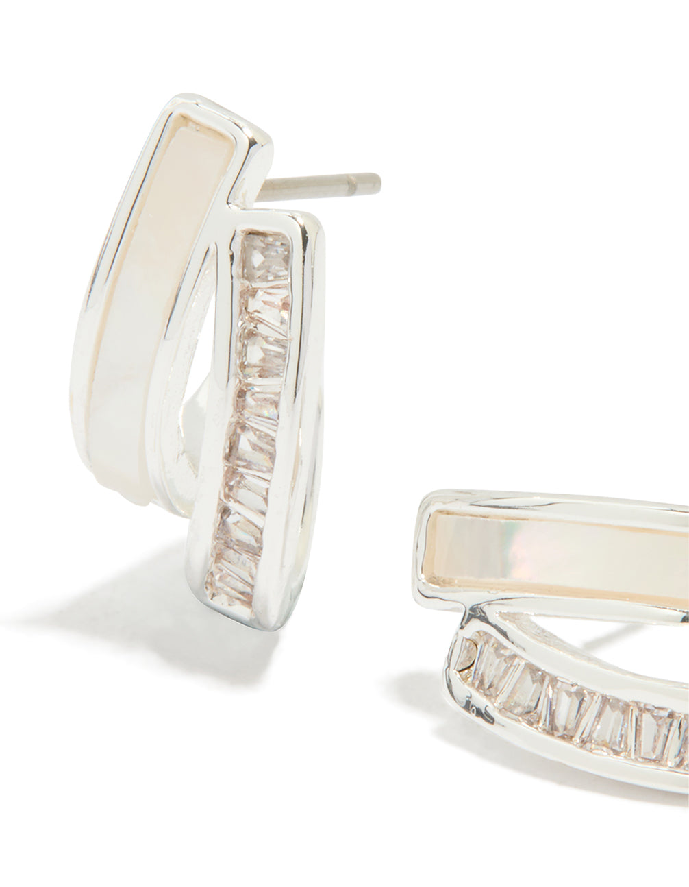 Silver Plated Cubic Zirconia & Mother Of Pearl Jacket Earrings