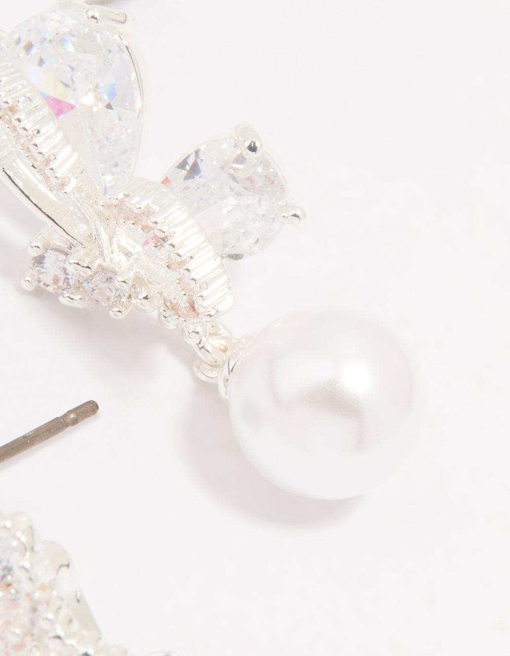 Silver Plated Cubic Zirconia Pearl Butterfly Drop Earrings