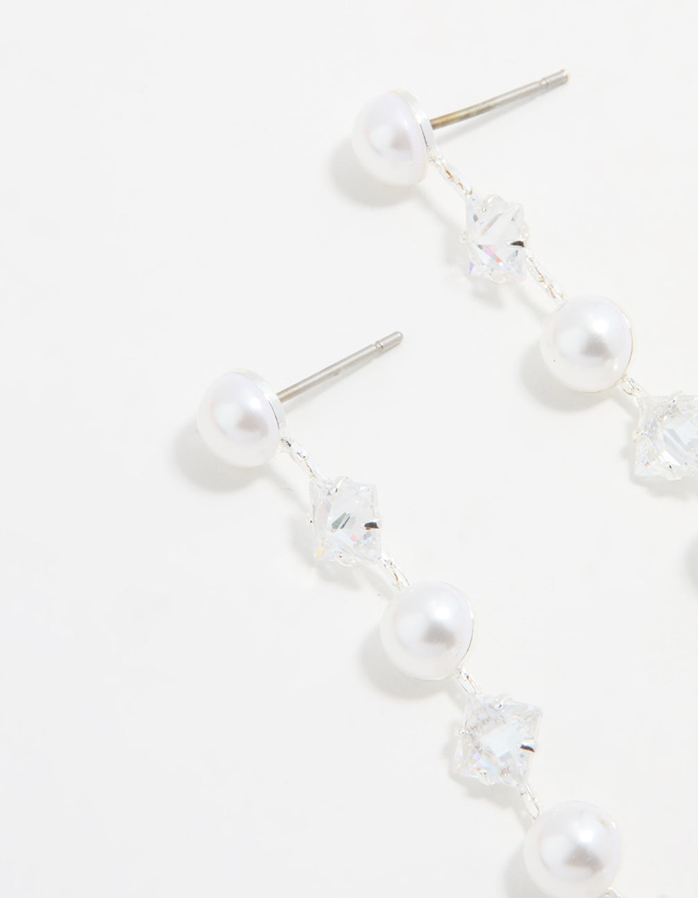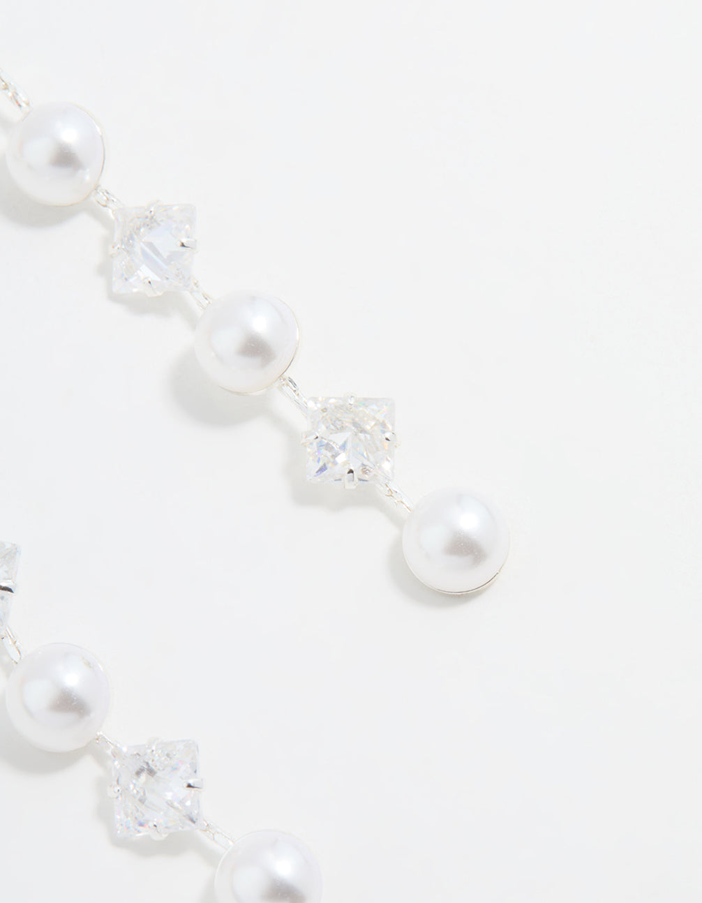 Silver Plated Cubic Zirconia & Pearl Drop Earrings