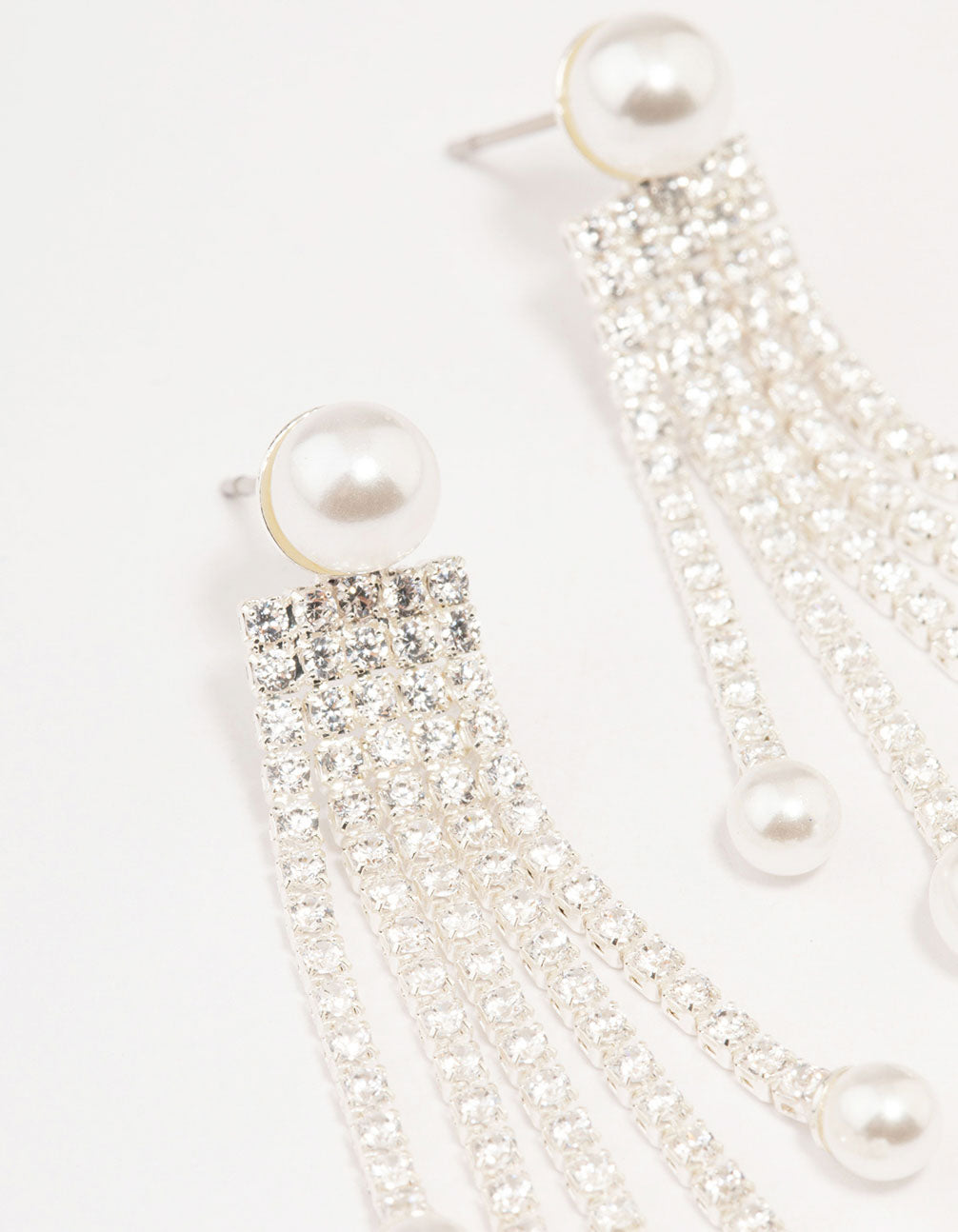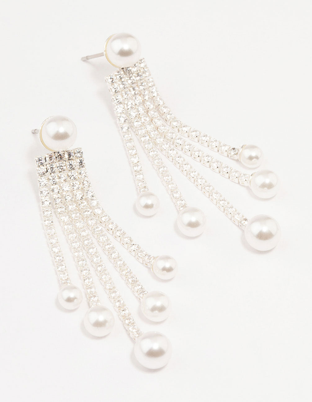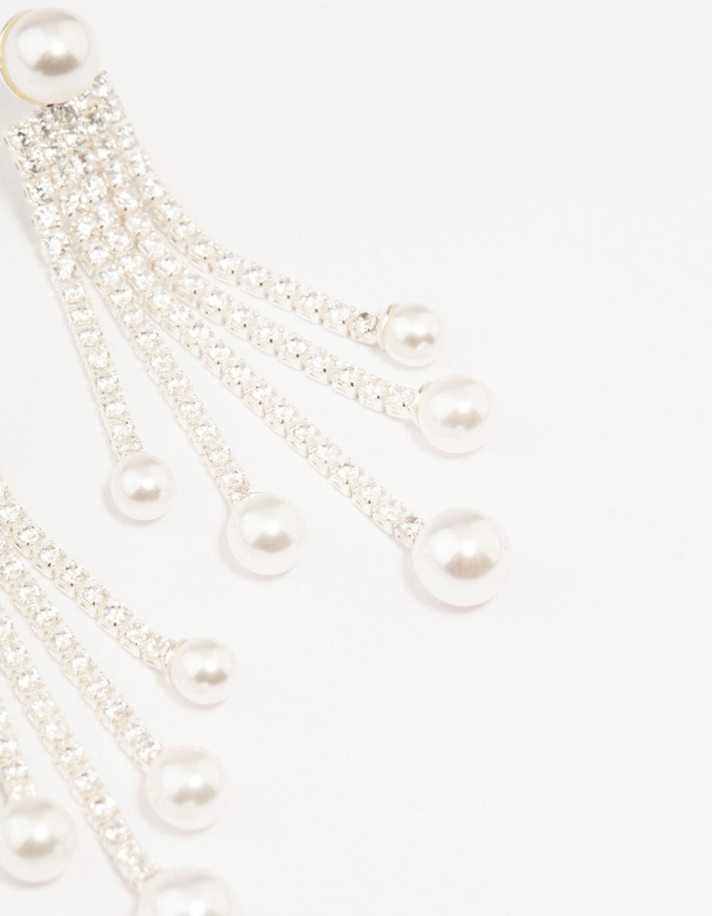 For a refined finish to your look, style these silver plated drop earrings. These unique dangle earrings feature strands of mini diamantes, adorned with pearls for an elegant touch.