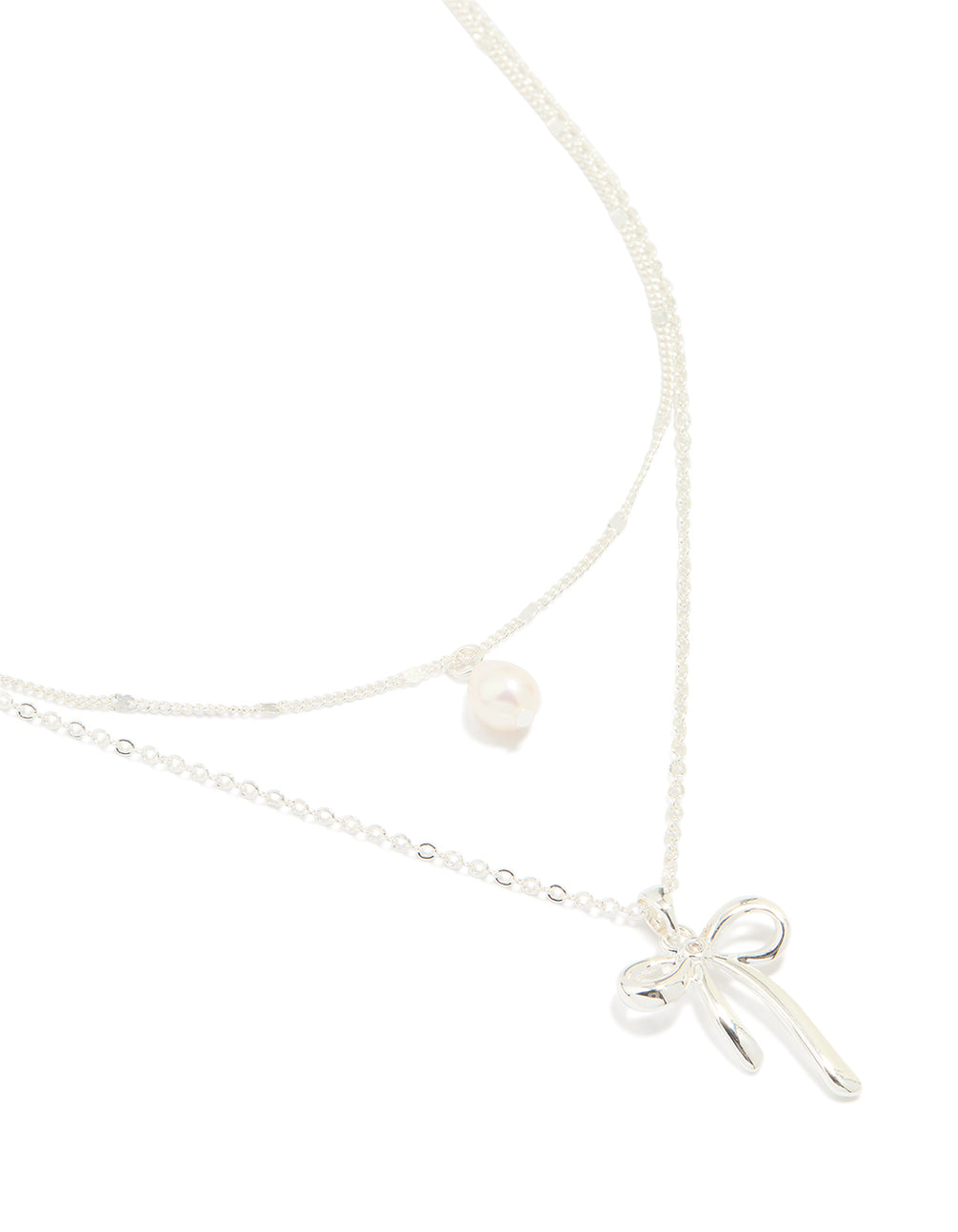 Silver Plated Freshwater Pearl & Bow Layered Necklace