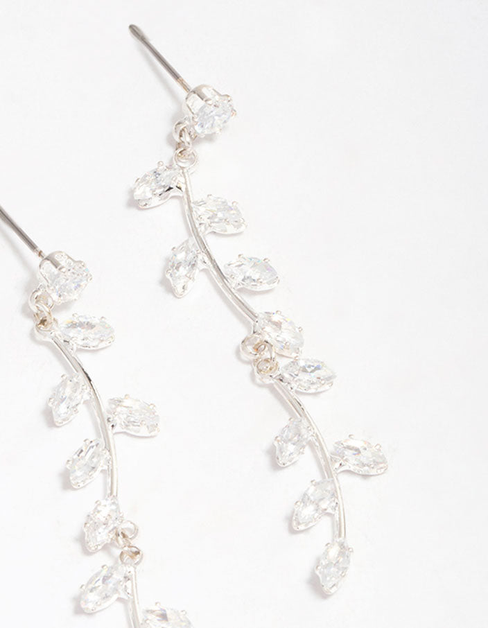These decorative drop earrings are plated with real silver and feature a dainty vine design with cubic zirconia crystals for a glamorous touch.
