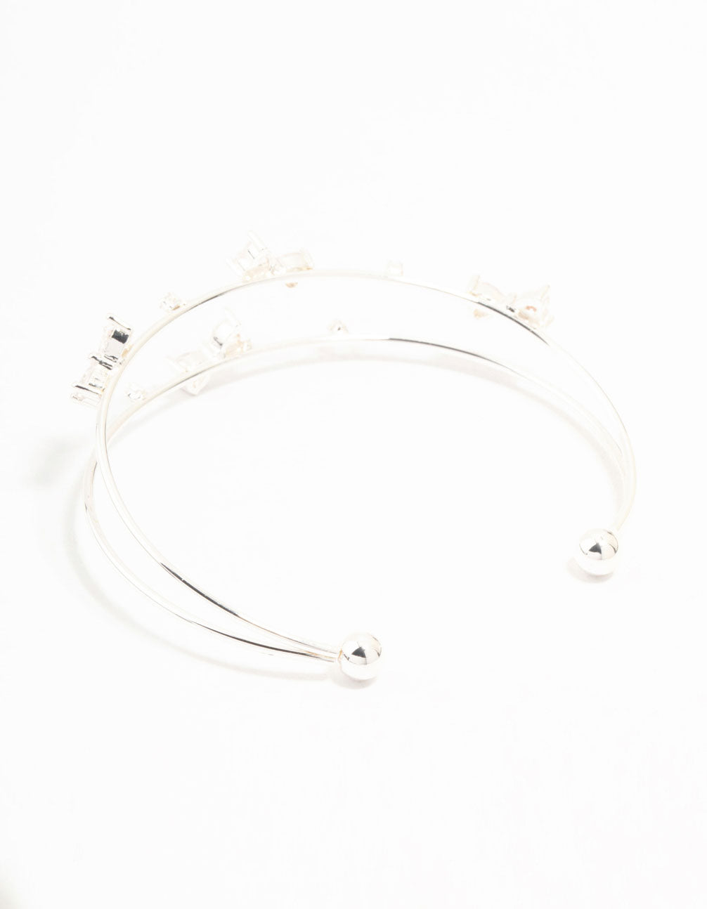 Silver Plated Mini Cubic Zirconia Bows Wrist Cuff