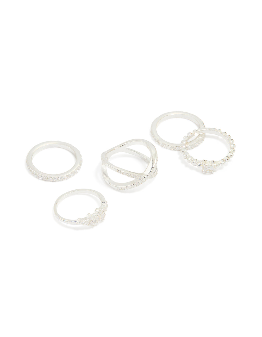 Silver Plated Mixed Diamante Cross Rings 5-Pack Silver Plated Mixed Diamante Cross Rings 5-Pack Silver Plated Mixed Diamante Cross Rings 5-Pack