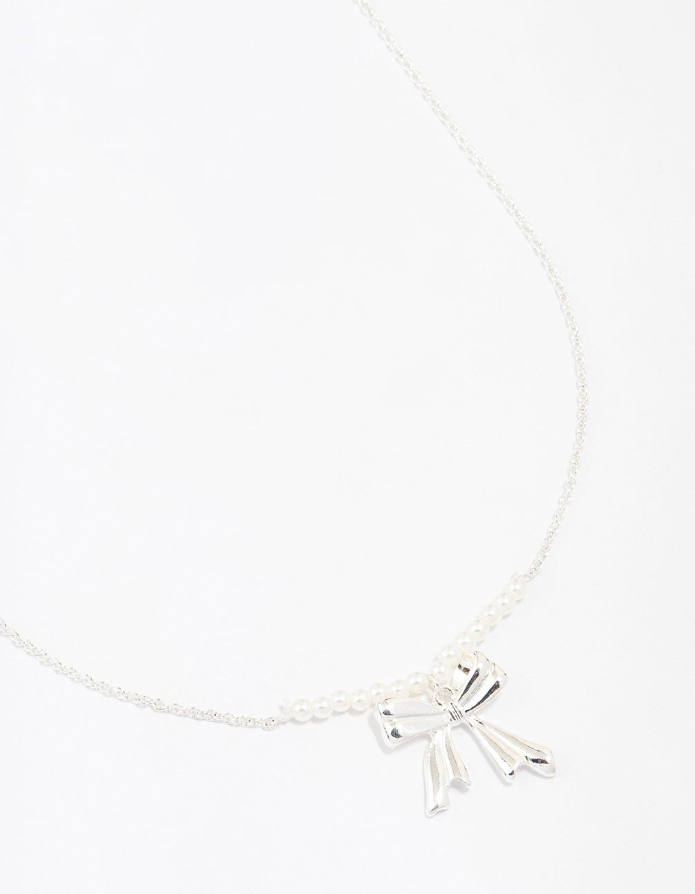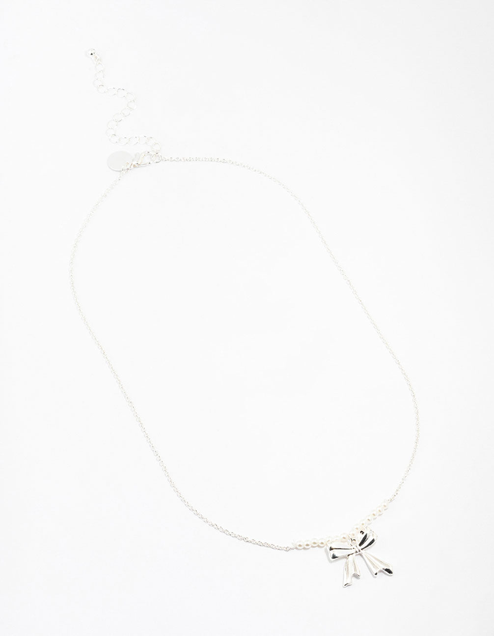 Indulge in this Silver Pendant Necklace with an intricate bow design and a captivating freshwater pearl for a fun coquette inspired look. This necklace makes for the perfect timeless essential for those who appreciate refined luxury.