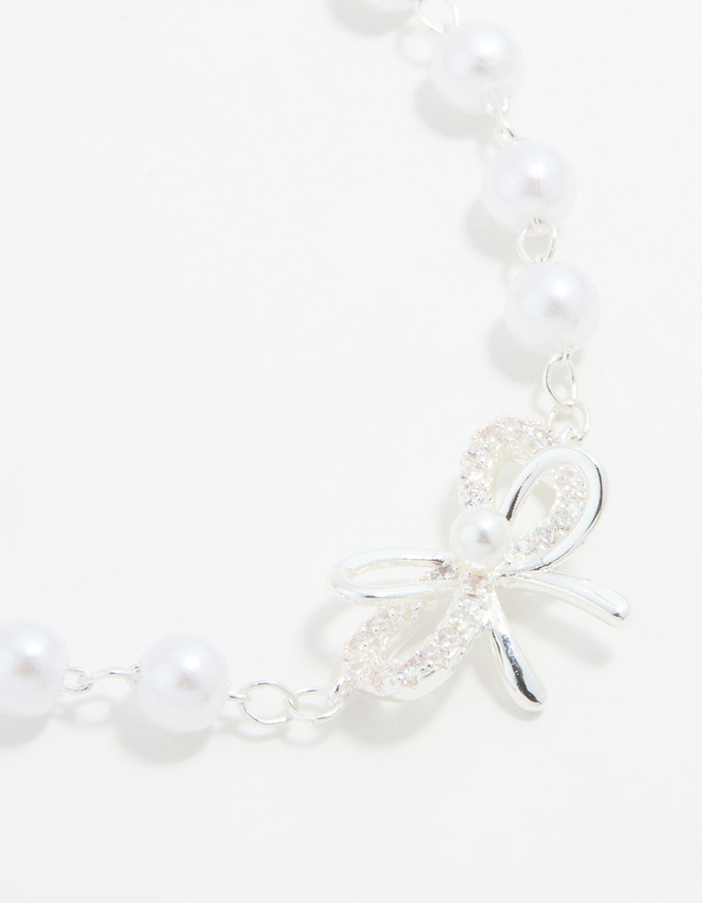 Silver Plated Pearl Double Bow Bracelet Silver Plated Pearl Double Bow Bracelet Silver Plated Pearl Double Bow Bracelet