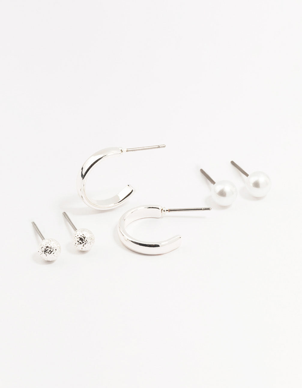 Silver Pearl Stud & Hoop Earrings 3-Pack