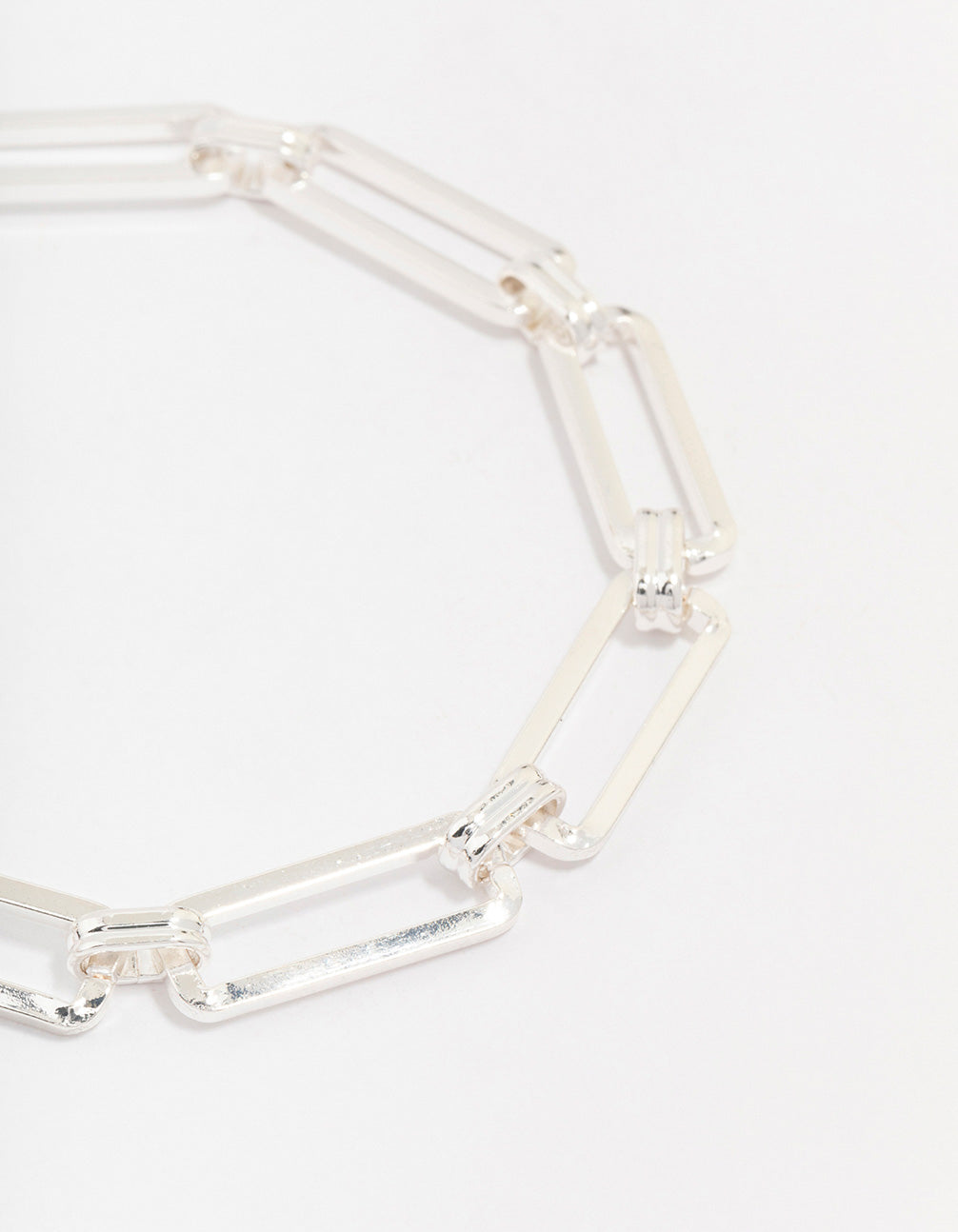 Silver Plated Brass Stretch Rectangular Link Bracelet