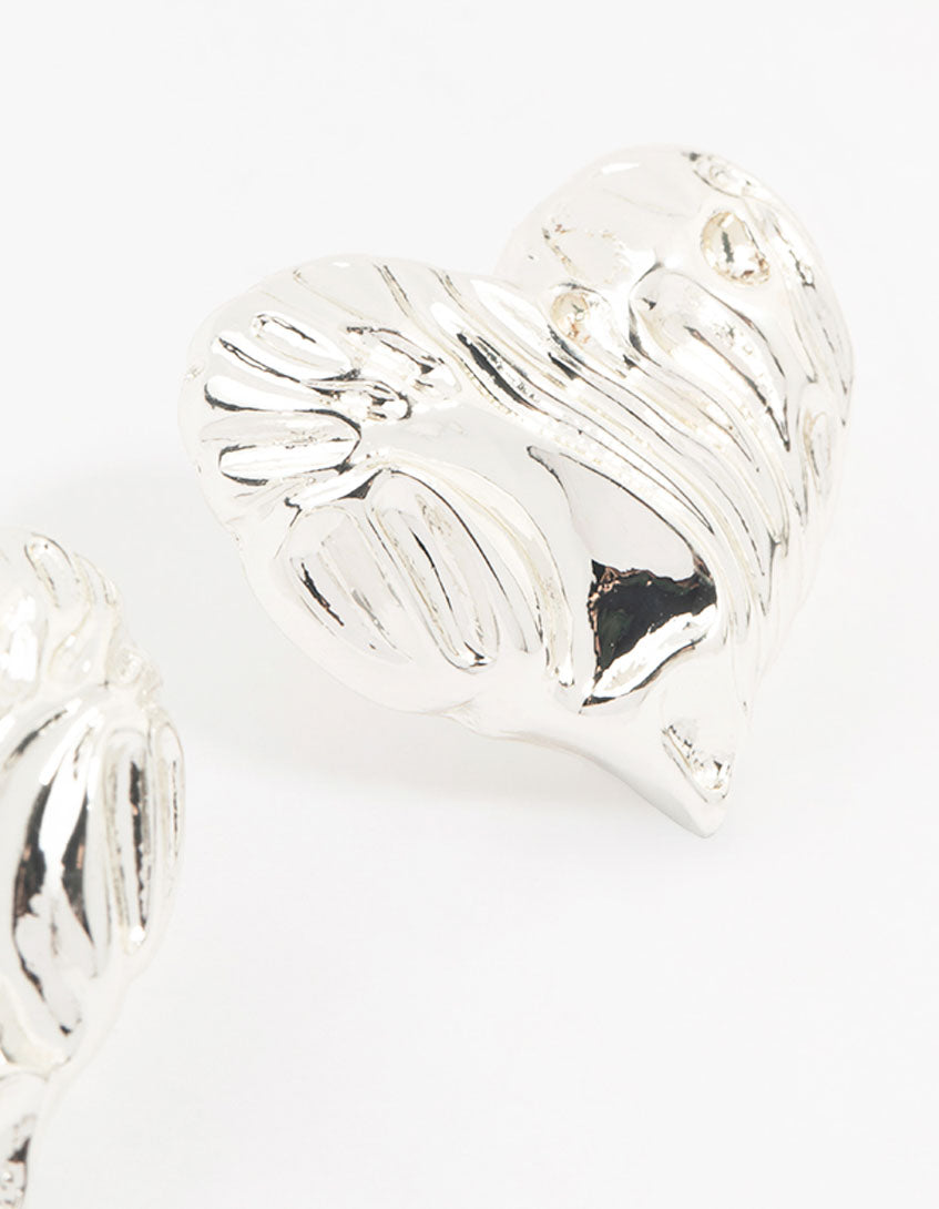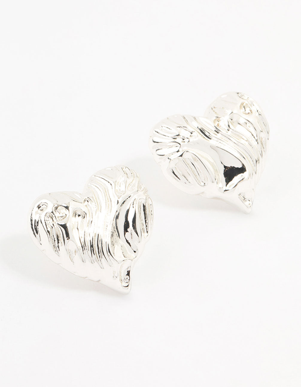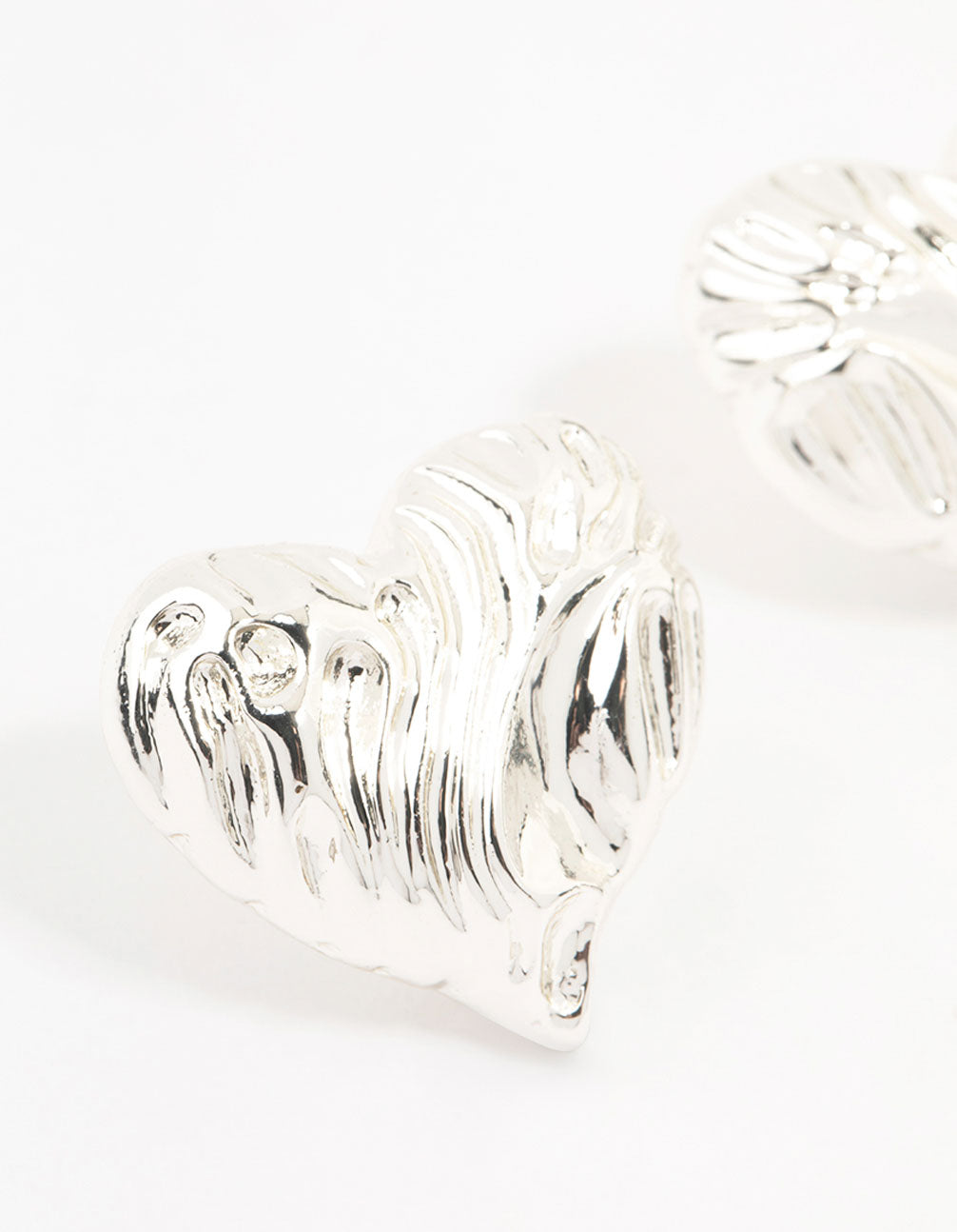 Silver Plated Textured Heart Stud Earrings Silver Plated Textured Heart Stud Earrings Silver Plated Textured Heart Stud Earrings