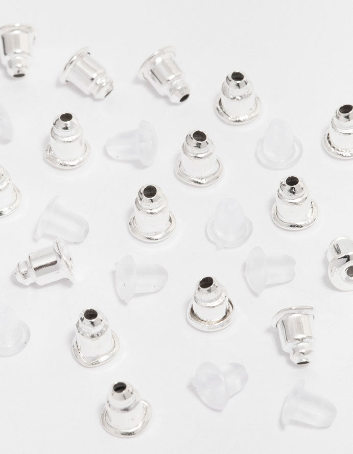Lost an earring back? We've got you! This tub of silver and clear earring backings is perfect for keeping in your handbag, luggage, or in your jewellery box for fashion emergencies.