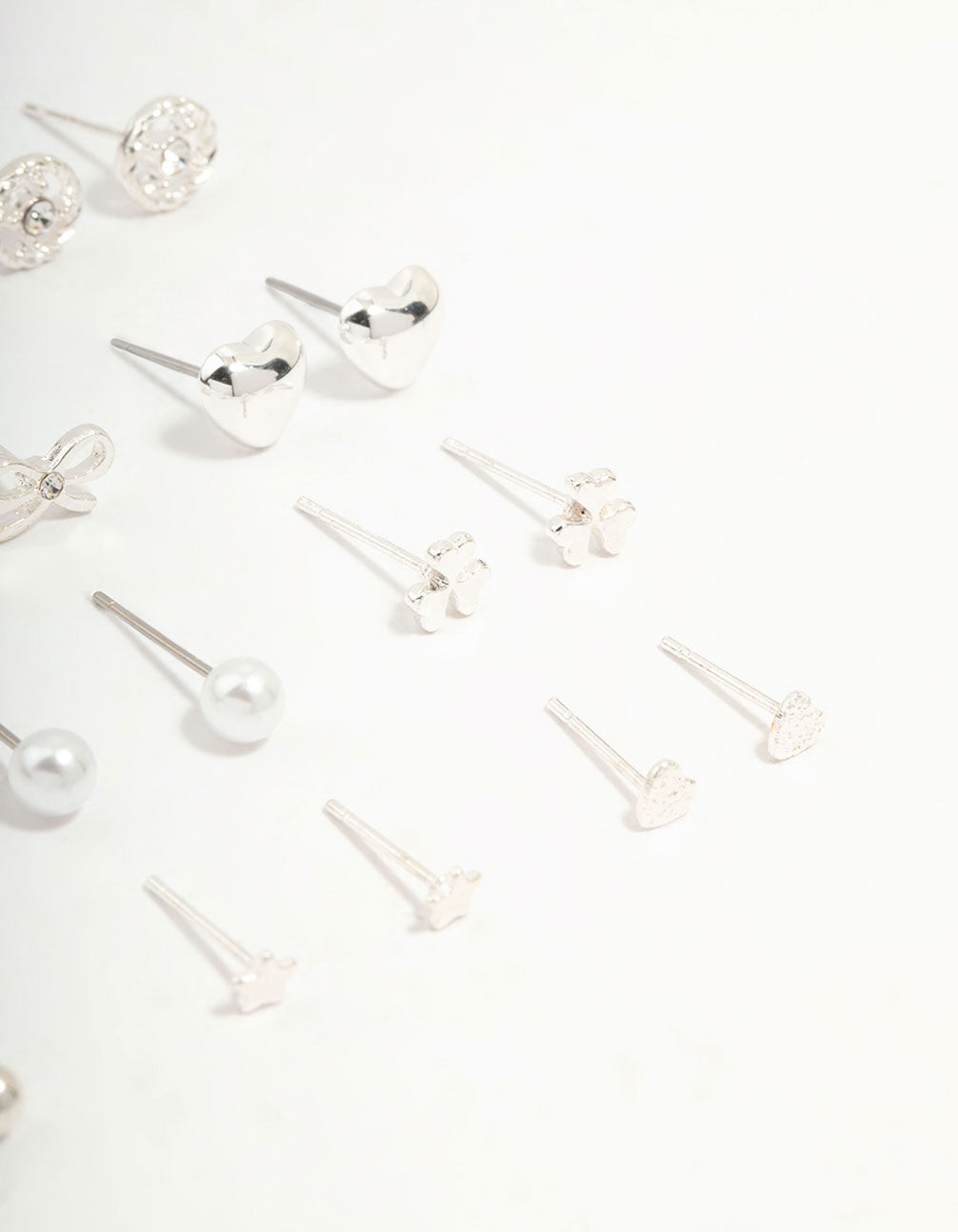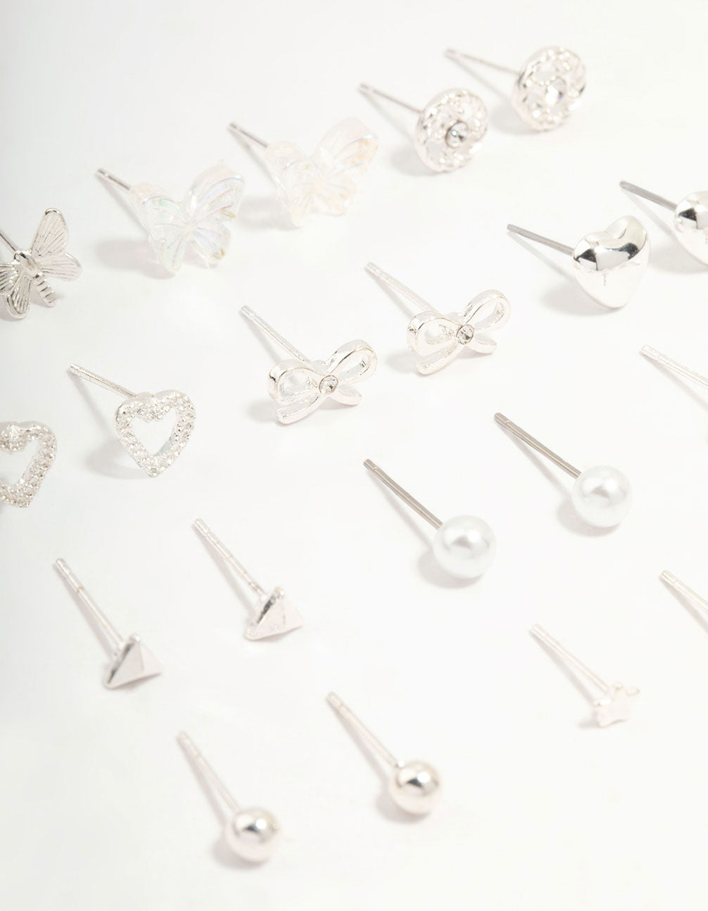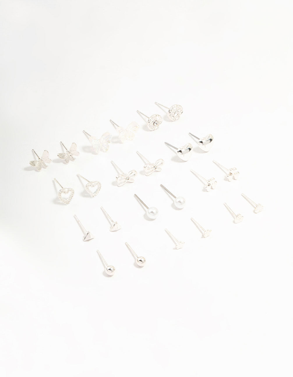 Silver Butterfly & Mixed Style Stud Earrings 12-Pack