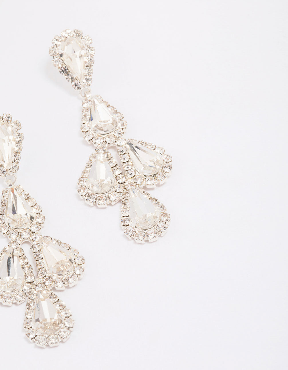 These stunning drop earrings feature a teardrop shaped silhouette, encrusted with sparkling diamantes in a dazzling diamante design. Perfect for evening wear or any special occasion, these earrings add instant glitz and glamour to any outfit.