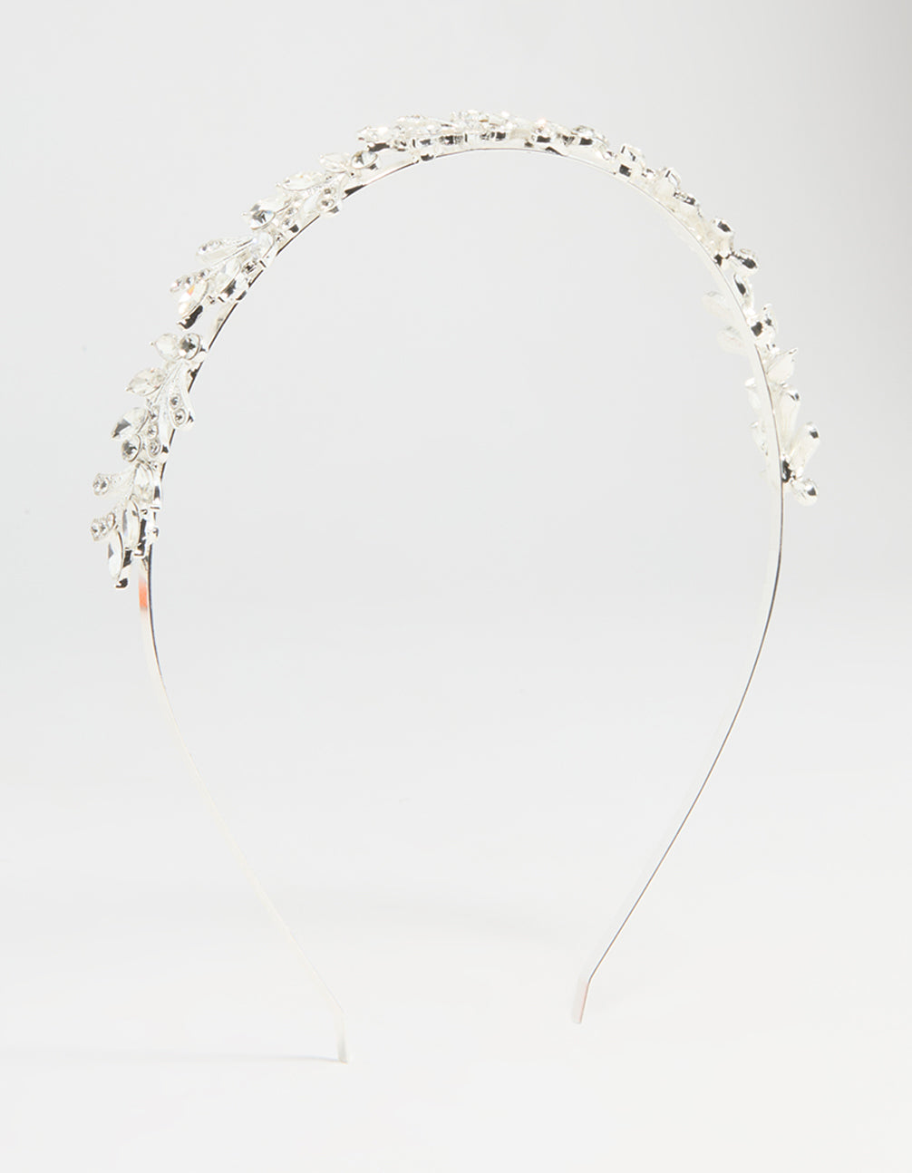 Dazzle with the Silver Winding Leaves Headband! This enchanting accessory features delicate silver leaves on a winding vine design, perfect for brides who want an enchanting finish to their bridal look.