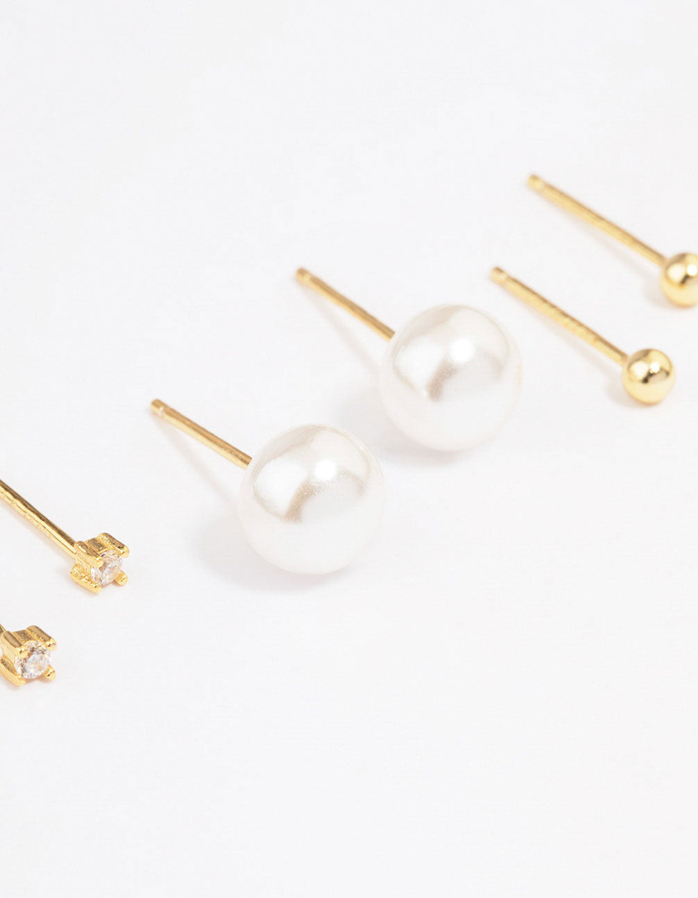 This gift box contains three sets of stud earrings including a set of cubic zirconia, round and pearl studs.