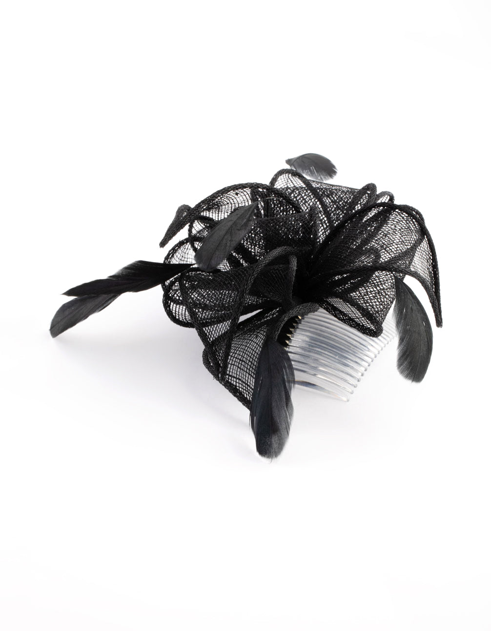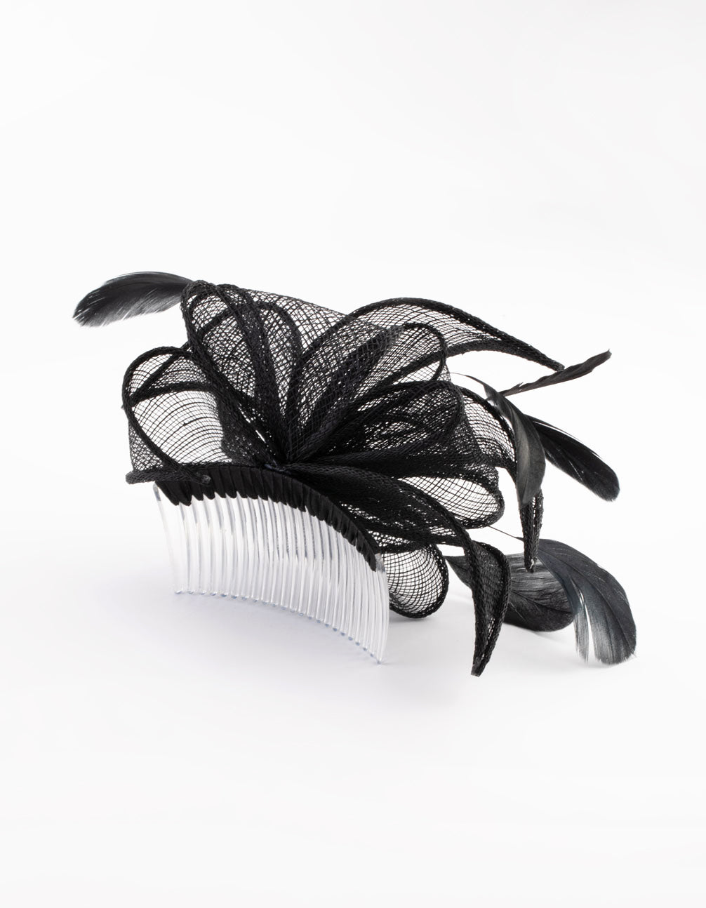 Black Looped Sinamay Fascinator Comb with Feathers