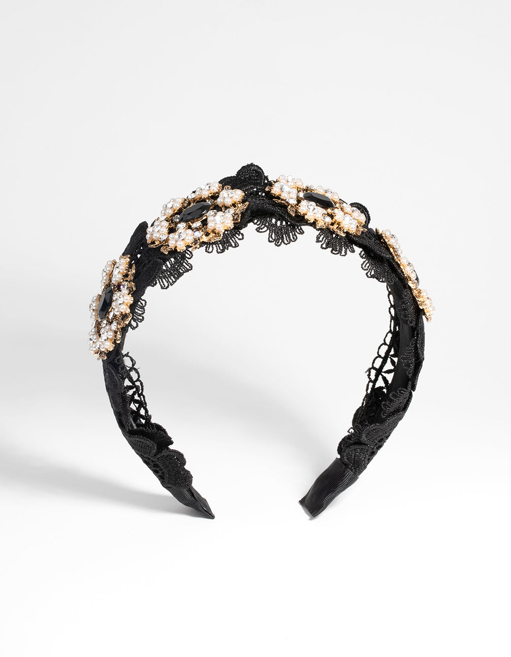 Black Lace & Flower Beaded Headband