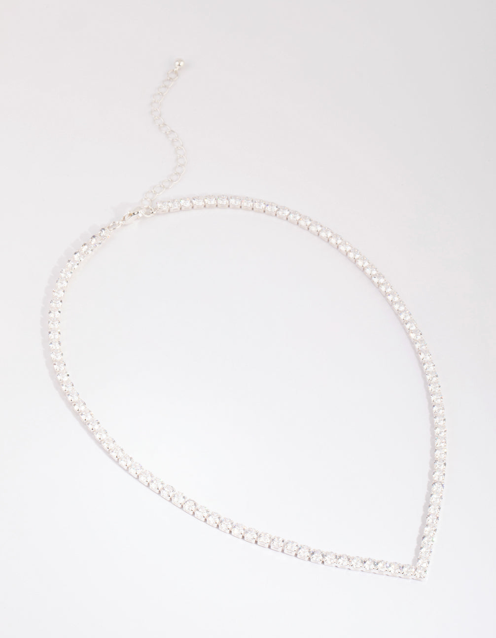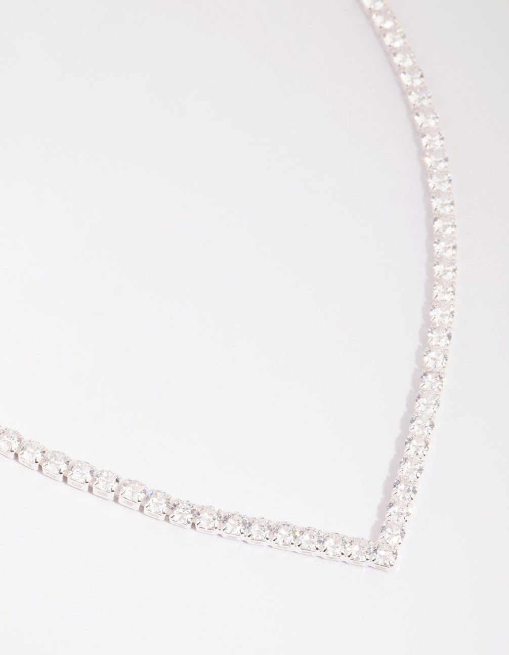 Silver Cubic Zirconia Cup Chain Pointed Tennis Necklace