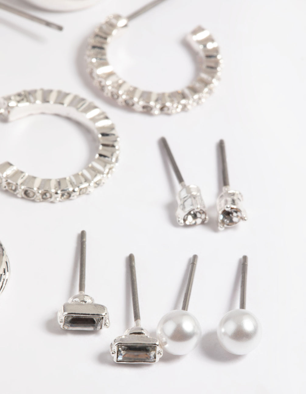 Silver Pearl Stud & Hoop Earrings 8-Pack