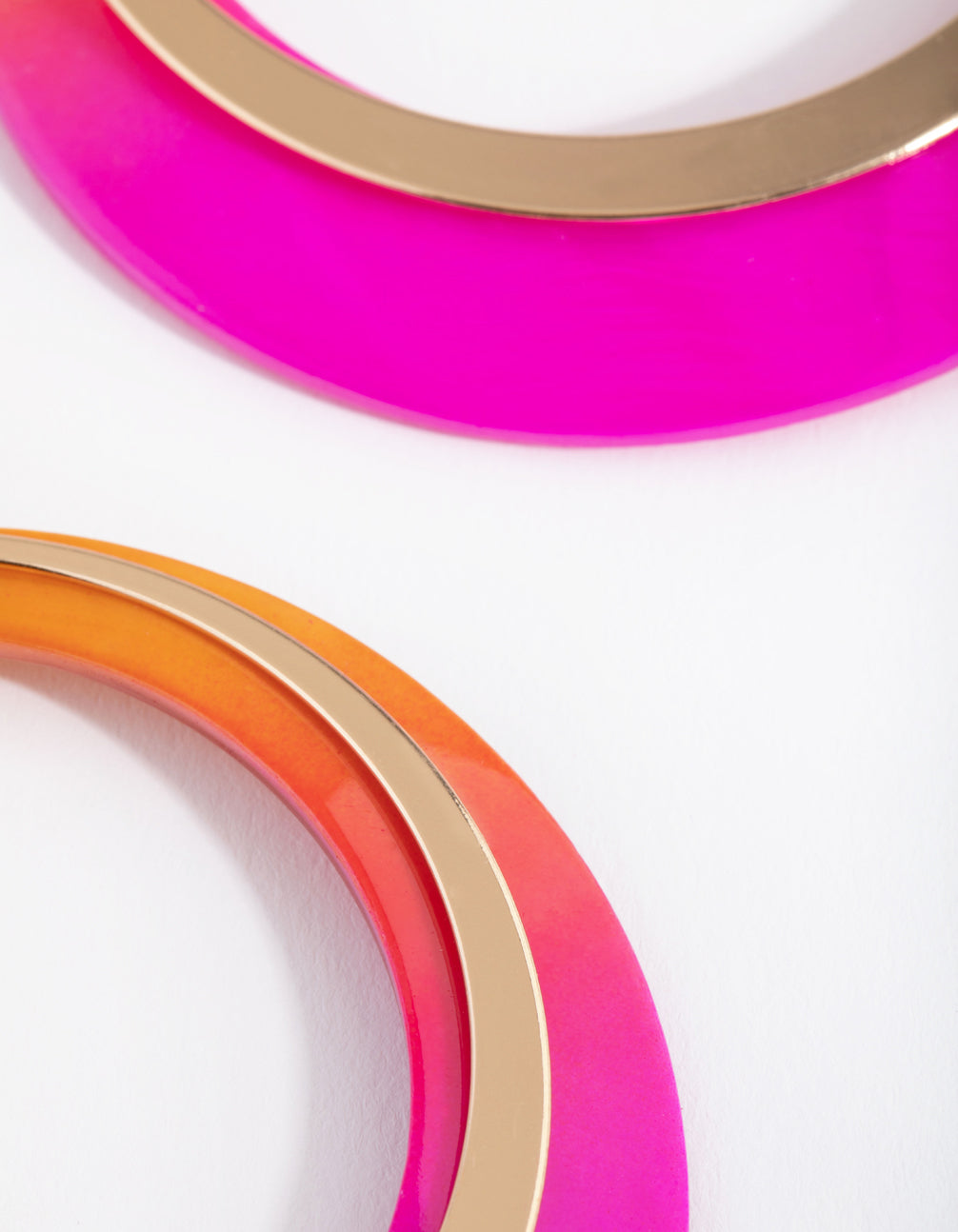 Leave a lasting impression with a pair of statement earrings! Adorned to a gold-toned stud, these vibrant earrings boast a large, pink and orange disc drop with a smaller, gold-toned disc attached. Let them stand alone for a considered look.