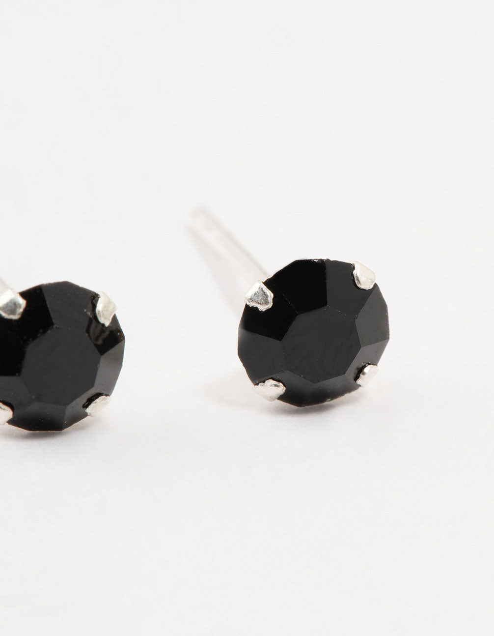 Sterling Silver Black Cubic Zirconia Stud Earrings