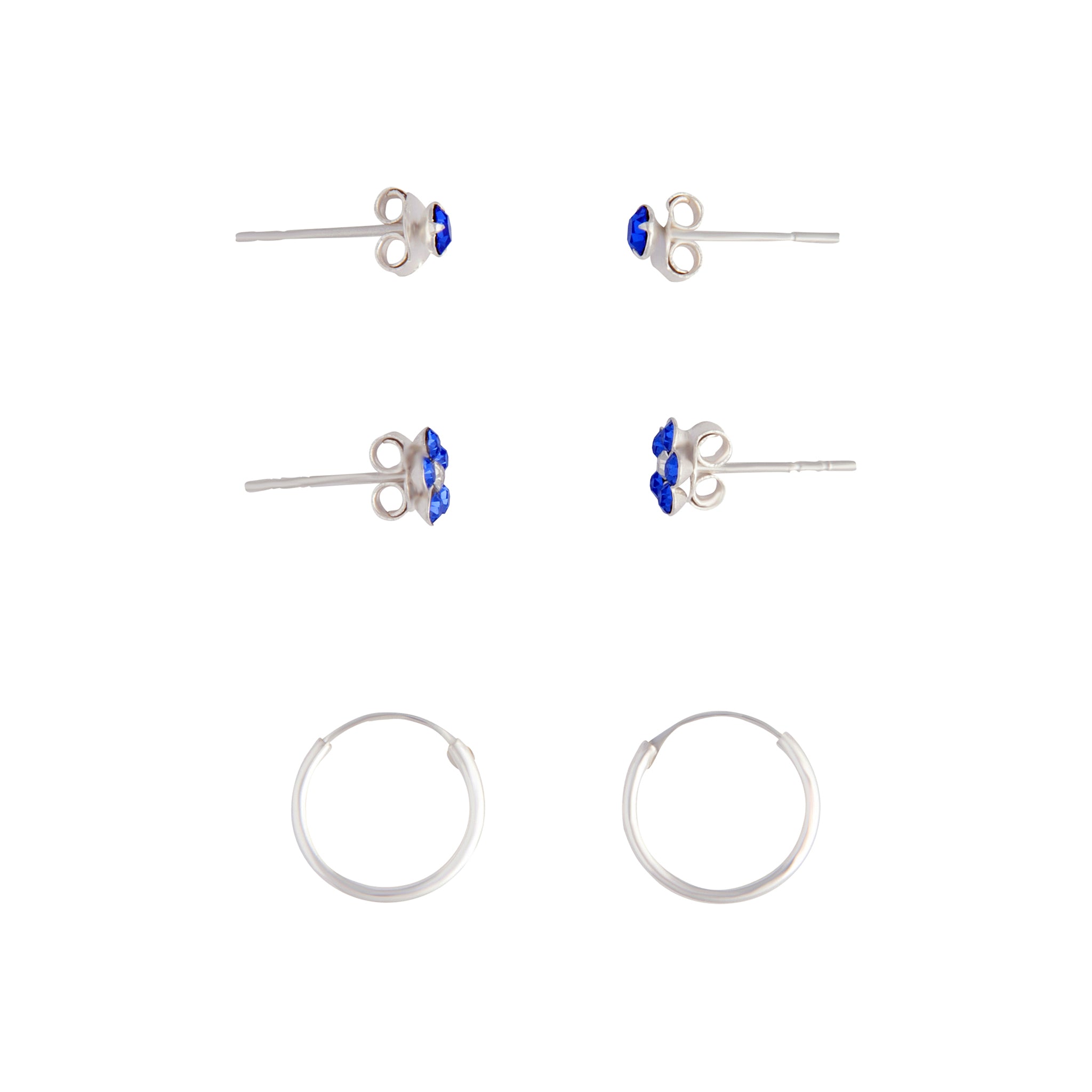 Sterling Silver Blue Stud, Flower & Hoop Pack