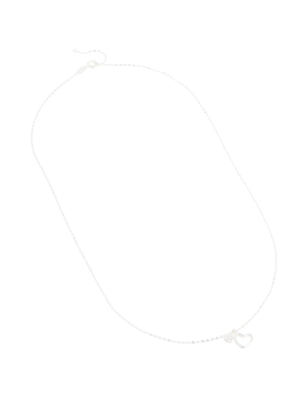 Add a touch of elegance to your look with this Sterling Silver Cubic Zirconia Double Heart Necklace. This stunning necklace features a delicate sterling silver chain and two intertwined heart pendants – one adorned with shimmering cubic zirconia crystals and the other in a sleek open-heart design. Perfect for everyday wear or special occasions, this necklace is a versatile addition to any jewellery collection. Pair it with a flowy dress for a romantic vibe or layer it with other sterling silver necklaces for a cool, stacked look. Whether you're heading to a dinner date, a wedding, or simply want to elevate your casual outfit, this timeless necklace is sure to shine.