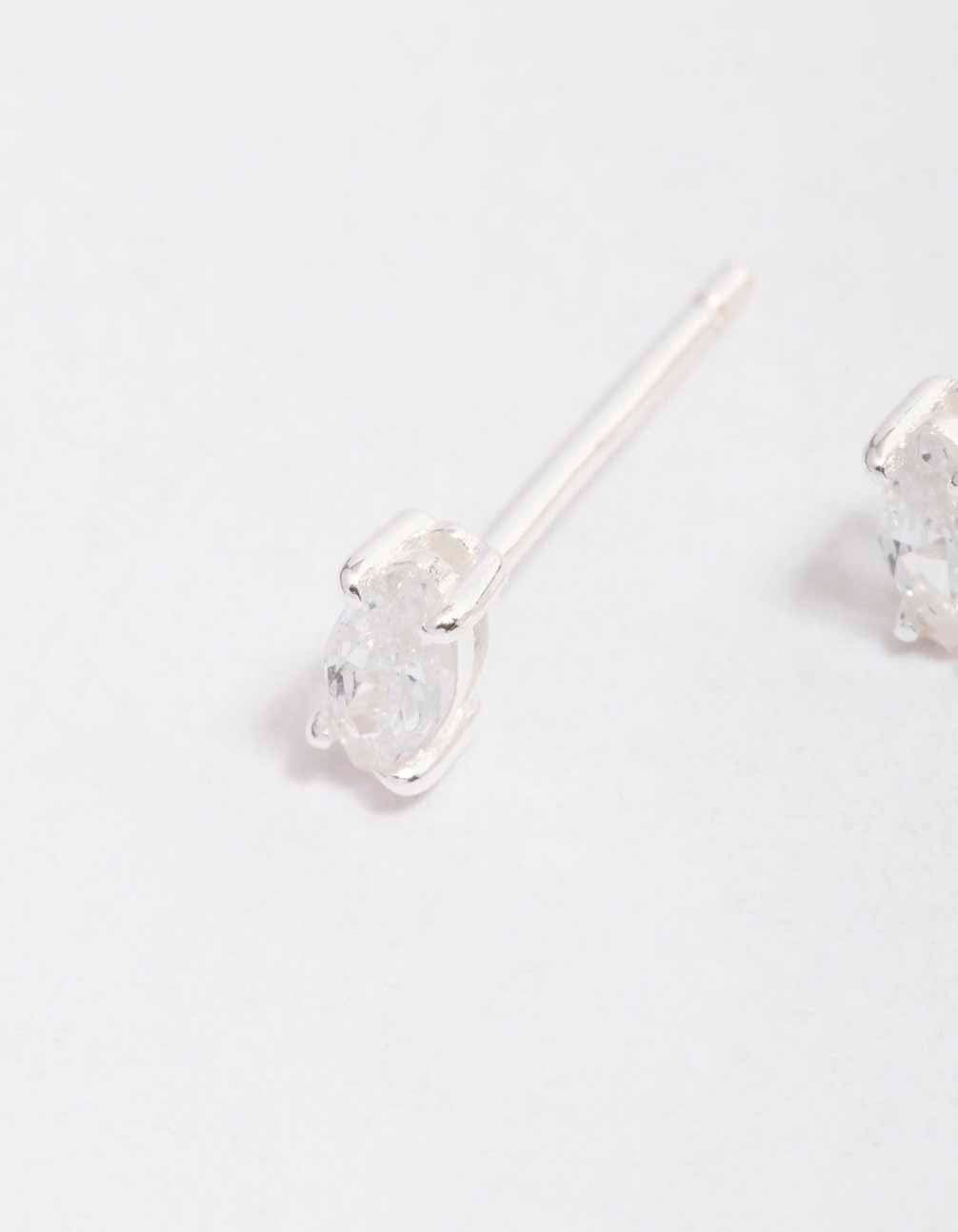 This set of stud earrings features a dainty profile, adorned with oval-shaped cubic zirconia crystals for a touch of glamour.