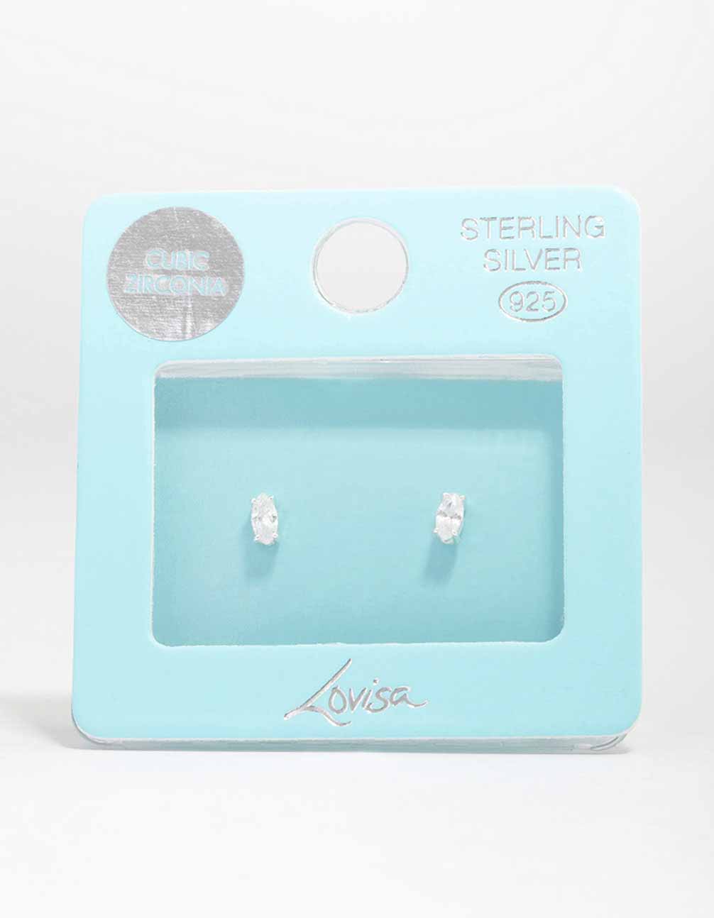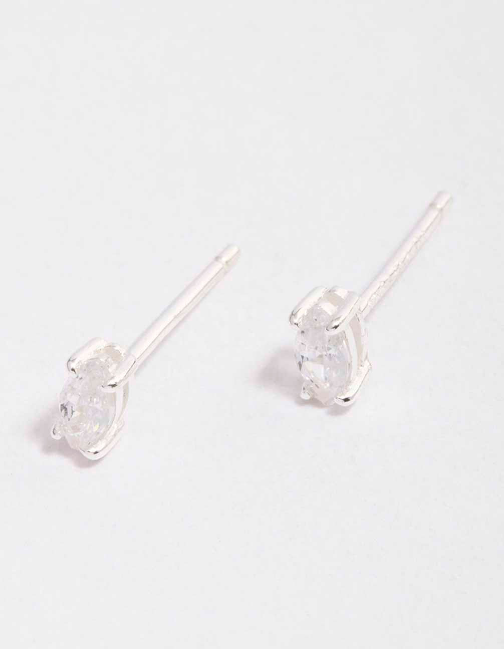 Sterling Silver Cubic Zirconia Marquise Stud Earrings