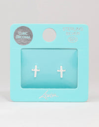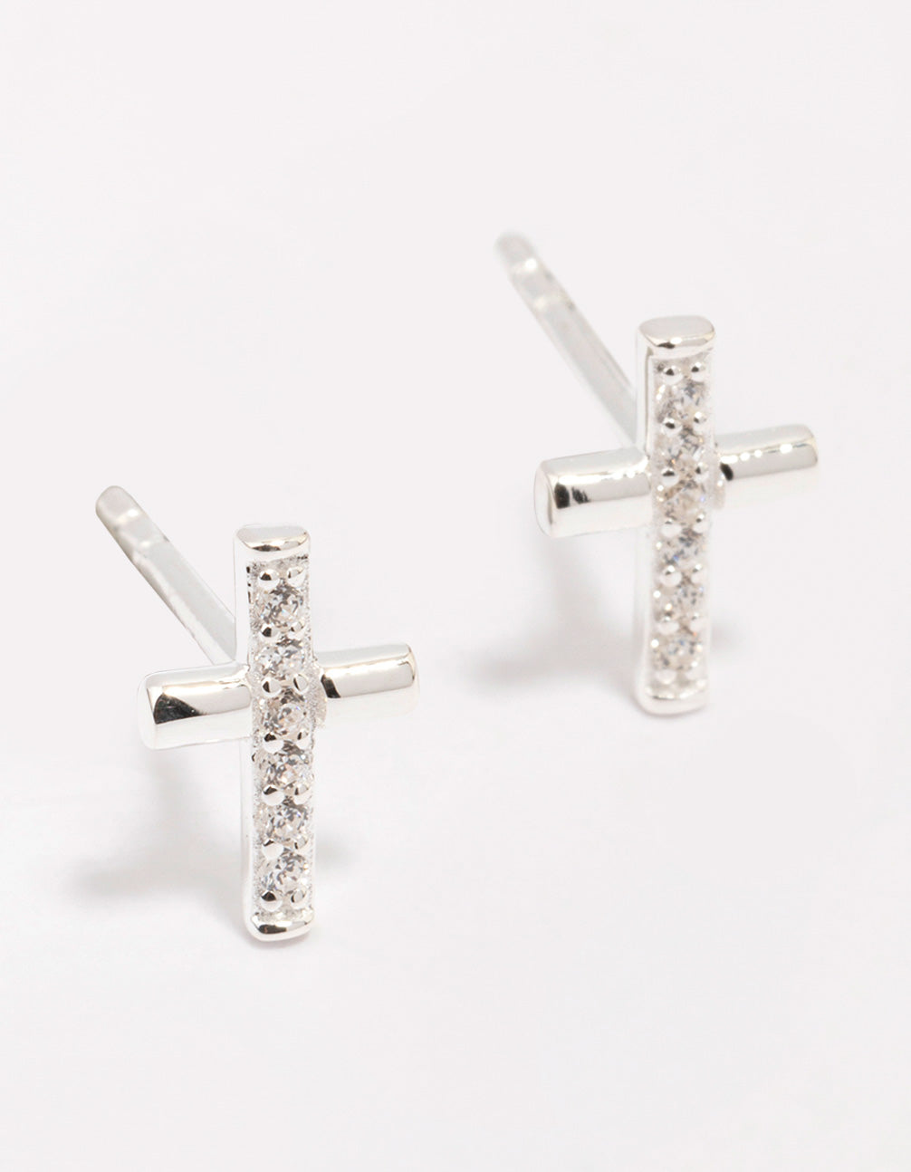 These classic stud earrings feature a cubic zirconia encrusted cross design.